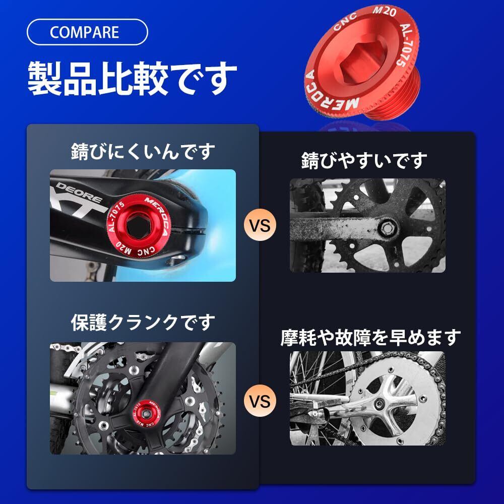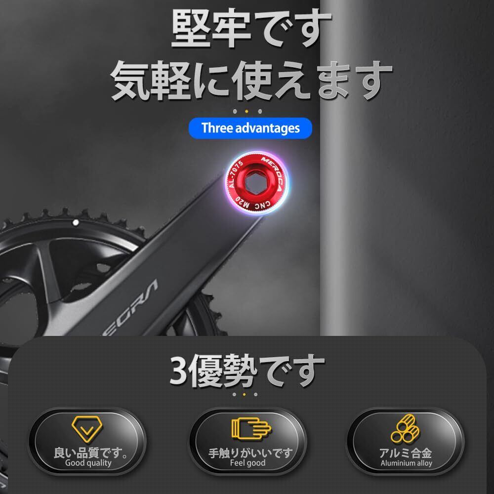 クランクボルト バイククランクキャップ 固定用ボルト 自転車クランクカバー アルミ合金製 耐久性 マウンテンバイククランク ロード自転車用 M20 (レッド)
