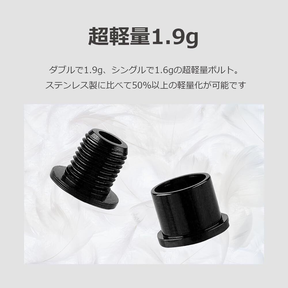 【超軽量1.9g】ダブルで1.9g、シングルで1.6gの超軽量ボルト。ステンレス製に比べて50%以上の軽量化が可能です