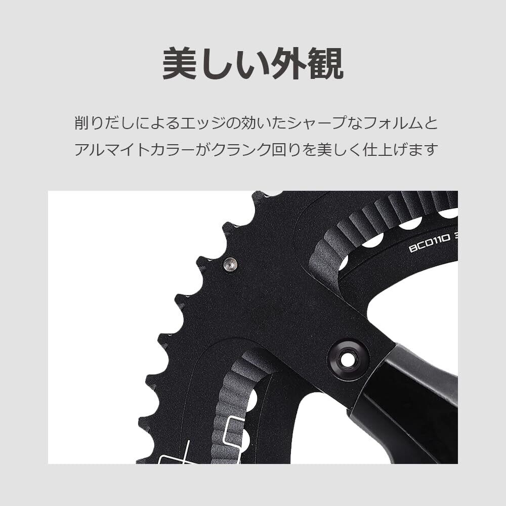 【美しい外観】削りだしによるエッジの効いたシャープなフォルムとアルマイトカラーがクランク回りを美しく仕上げます。硬く強いアルミ合金に施されたアルマイト処理は、合金の表面を不活性素材で覆い、錆による劣化を抑制します。