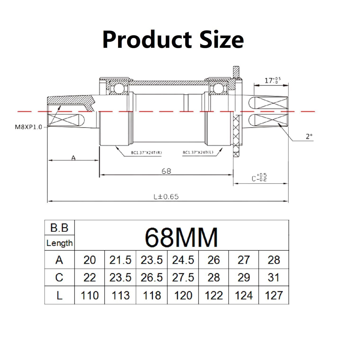 【適用車種】フレーム長68mm、クランクセットの正方形穴は許容。