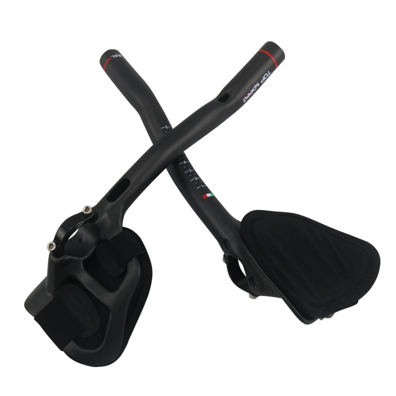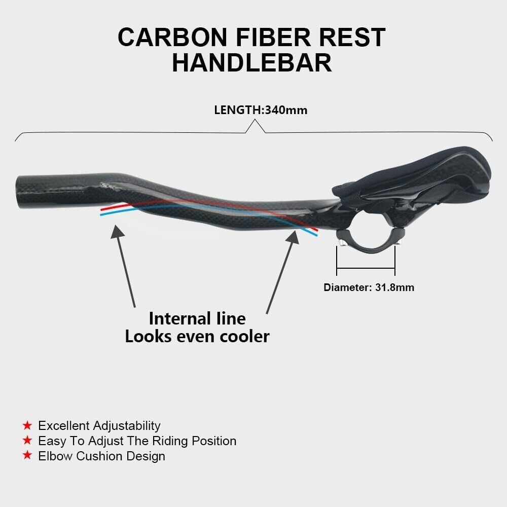 【TT トライアスロンハンドルバーのカーボン効果】 TT ハンドルバーアタッチメントの主な機能は、路面での風の抵抗を軽減することであり、その一方で、サイクリストの上半身をしっかりとサポートすることができ、平坦な路面での走行性を向上させます。ライダーが長距離を運転する際に、より簡単かつ快適なライディングを実現します。