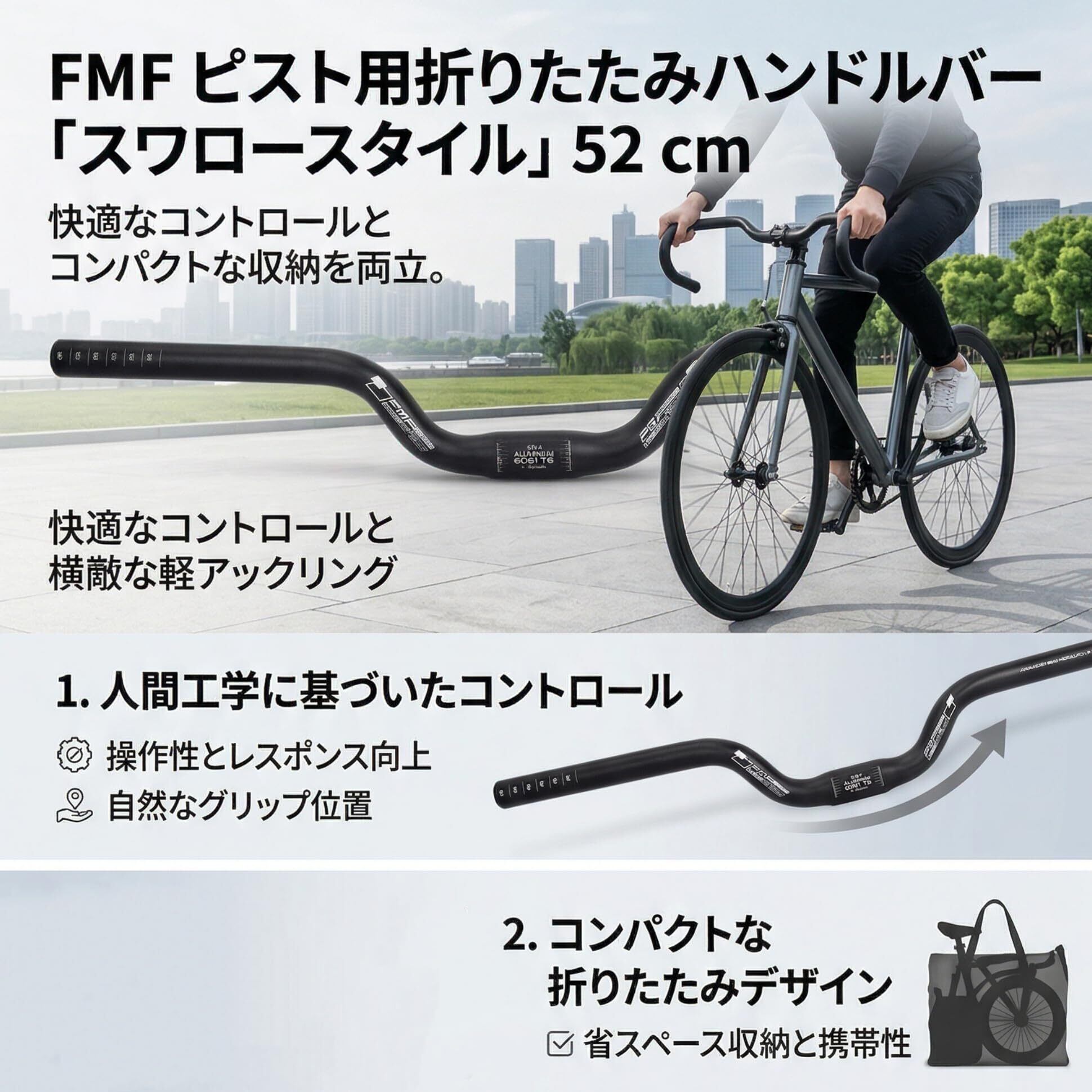 【折り畳み式】折り畳み式のデザインで、このハンドルバーは便利に収納でき、駐車スペースを節約でき、駐輪がもっと便利で楽になります。