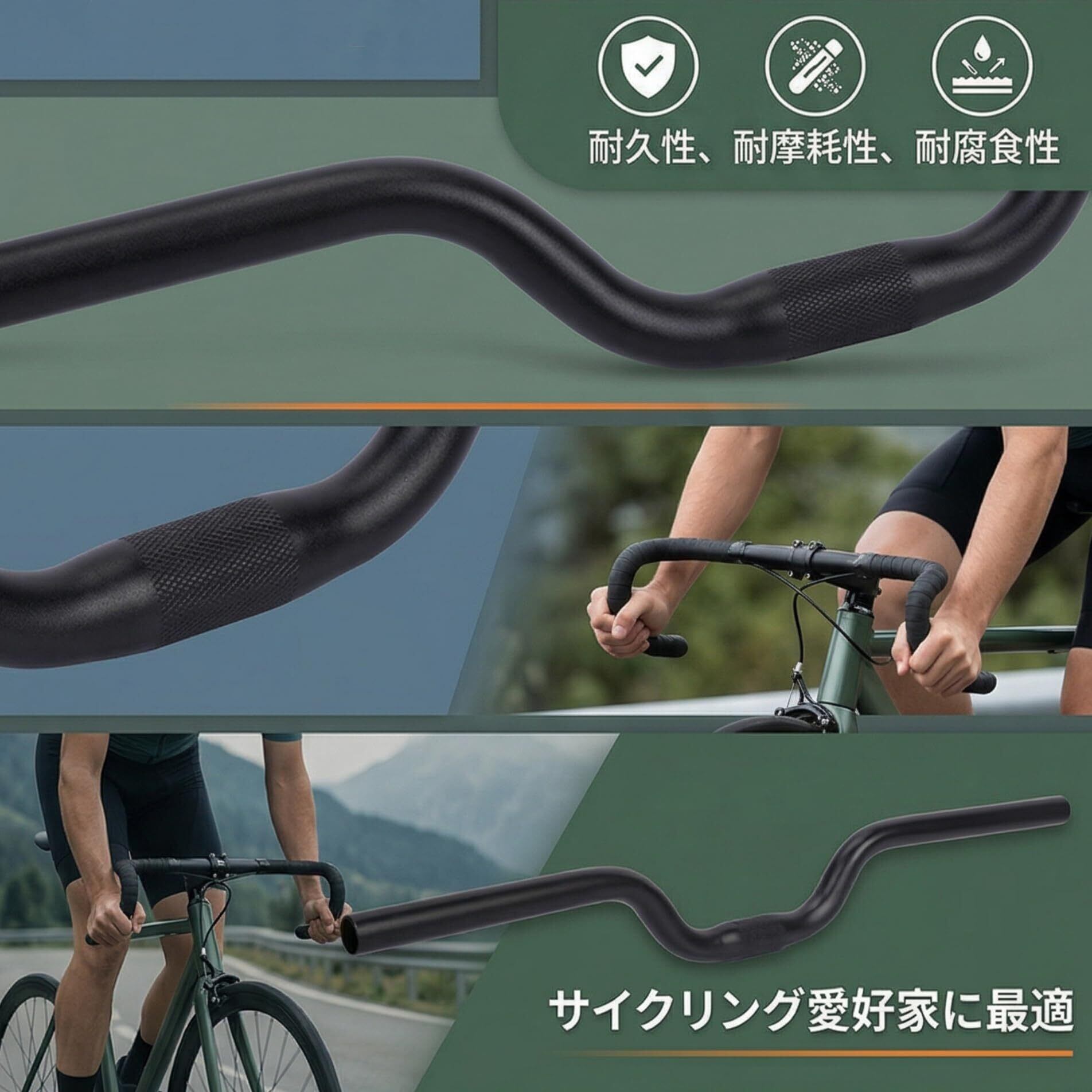 【アルミニウム合金】自転車ハンドルバーは、耐摩耗性と耐食性に優れた高品質のアルミニウム合金材料で作られており、長寿命と長持ちする外観を保証します。