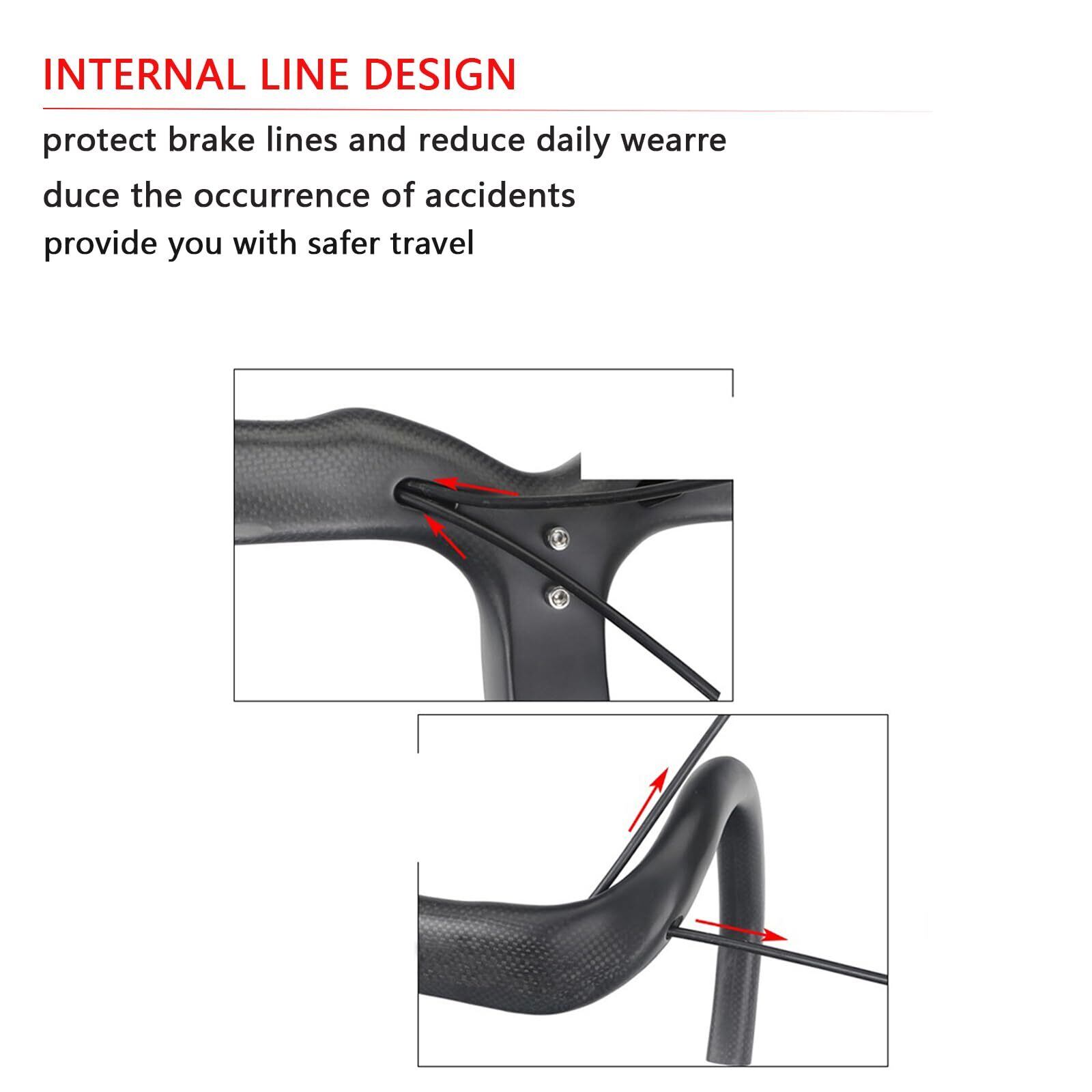 内部ルーティングを備えた一体型カーボンハンドルバーは、ブレーキラインを保護し、日常の摩耗を軽減し、事故の発生を減らし、より安全な乗り心地を提供します。