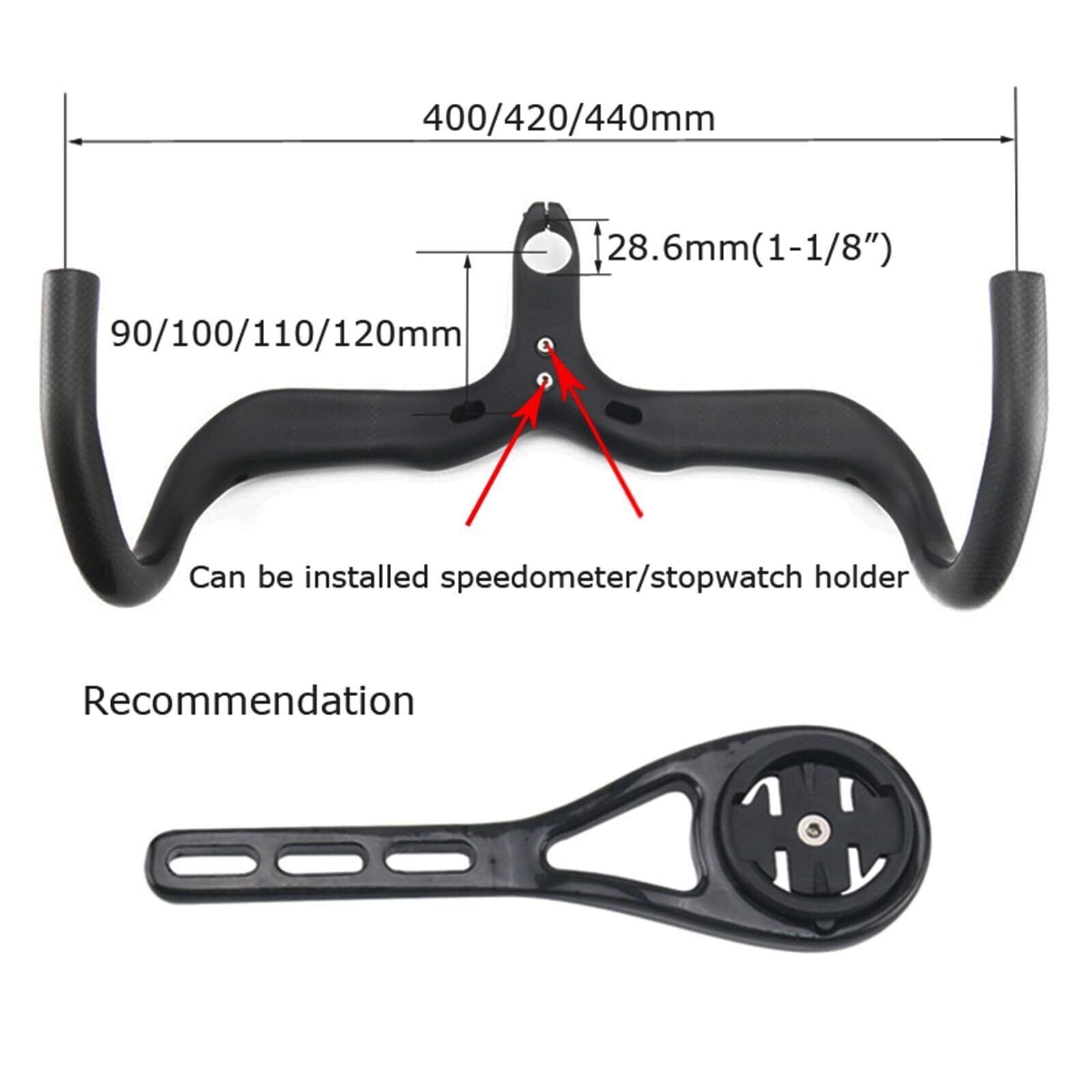 カーボンロードバイクハンドルバーは正しく組み立ててください。ネジは規定の締め付けトルク(4N・m)に従って締め付けてください。カーボン製ですので、手で締めて本体を支えることをお勧めします。これらのプリセットハンドルバースピードメーターホルダー取り付けネジは、スピードメーター/ストップウォッチホルダー(別売り)と一緒に取り付けることができます。