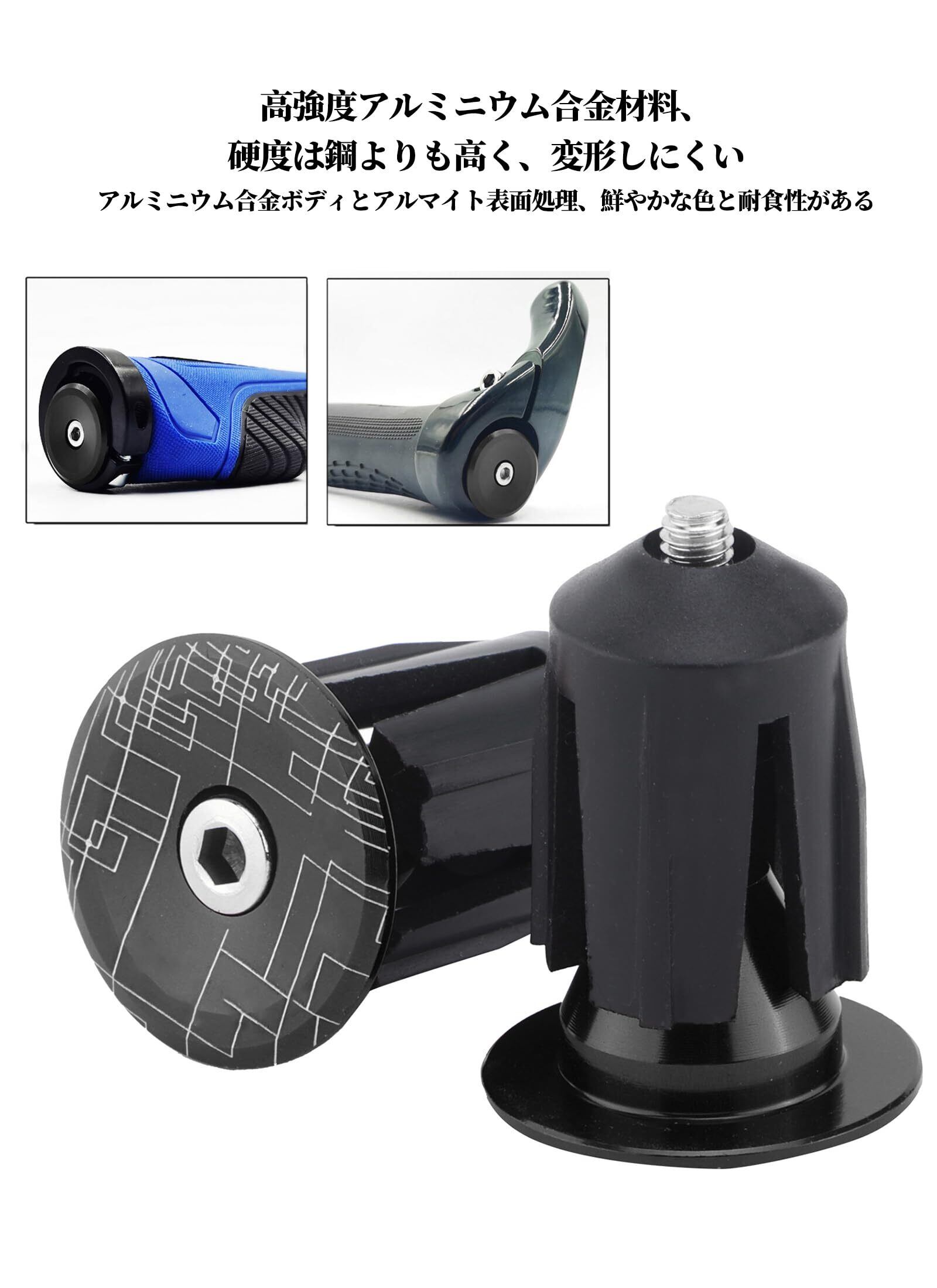エンドキャップ ハンドルエンドキャップ 安定性 高硬度 15.9‑21.4 mmの車種に適する 自転車バーエンドプラグ アルミ合金製 2点入り