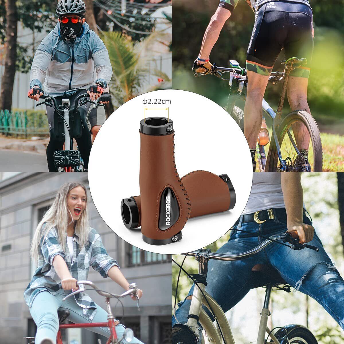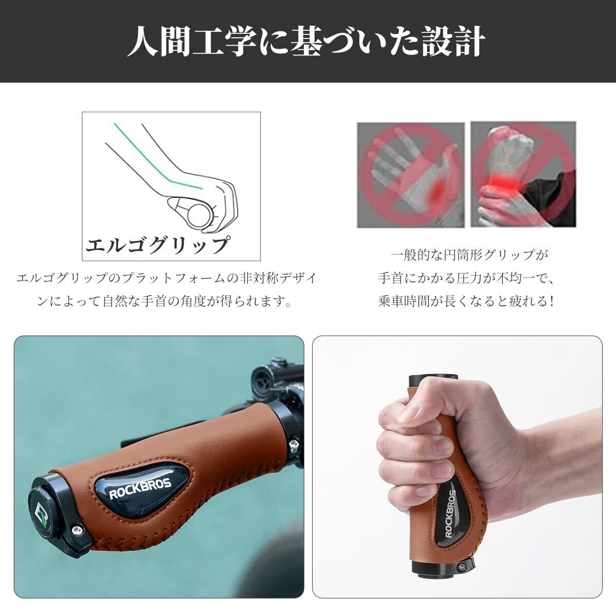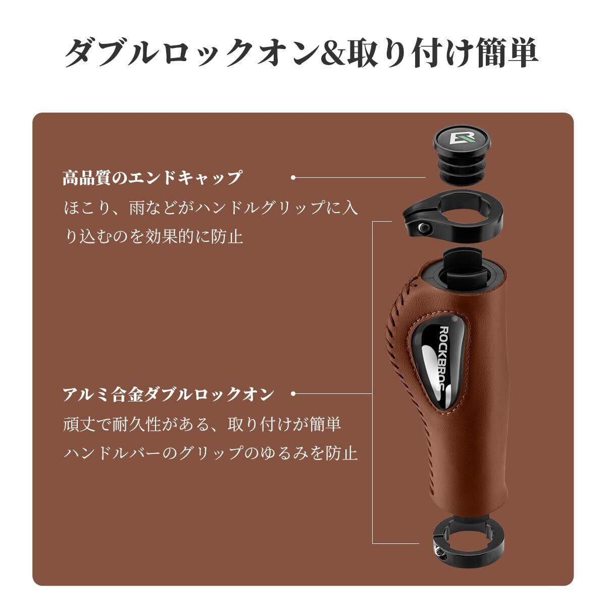 ROCKBROS(ロックブロス)自転車 グリップ 人間工学ハンドルグリップ 衝撃吸収 疲れにくい エルゴグリップ シリコンクッションパッド付き ダブルロックオン固定 φ22.2mm用 レザー クロスバイク サイクルグリップ