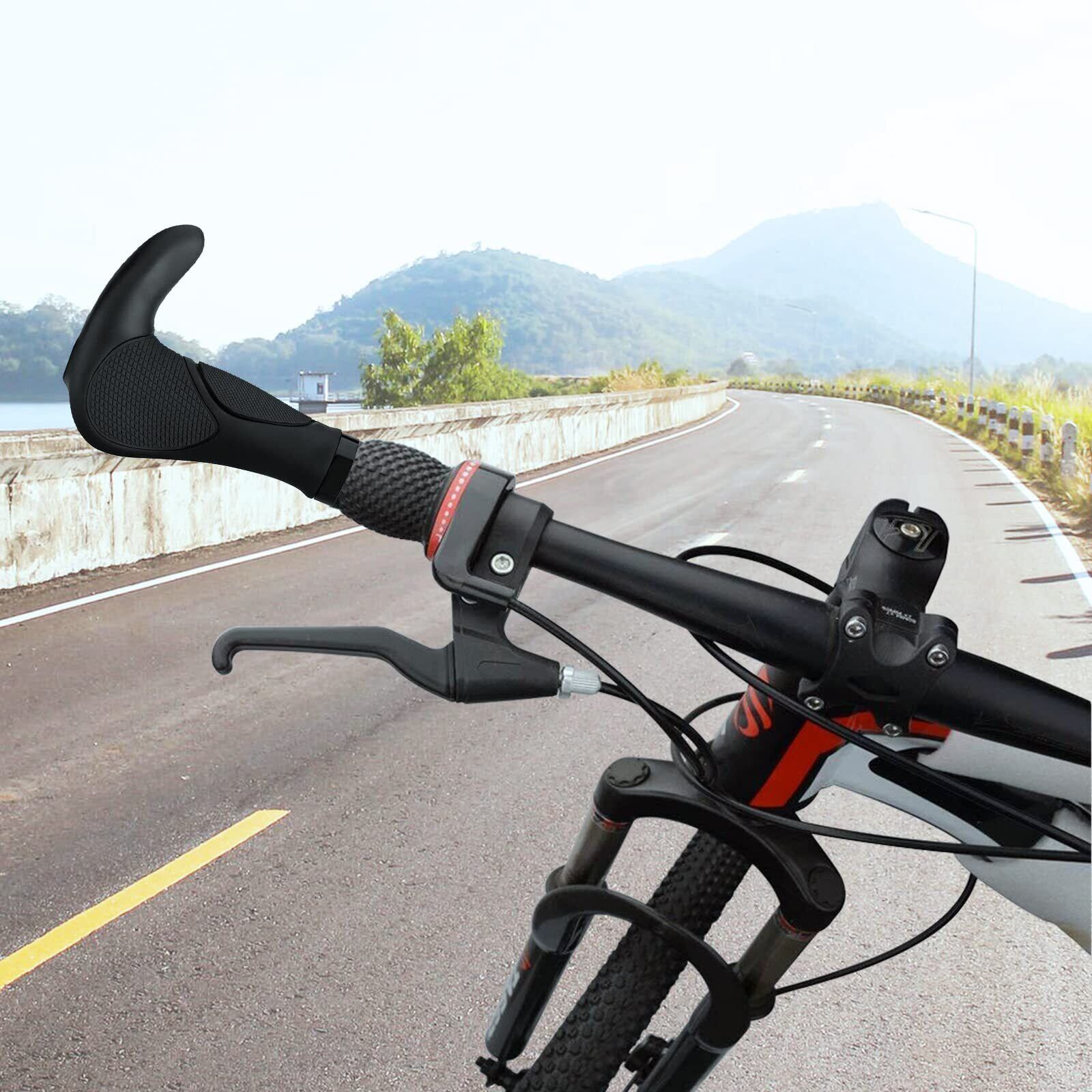 高品質の素材:自転車ハンドルは防振TPRゴム、アルミニウム合金材質である。グリップは柔らかく、路面からの衝撃を吸収し、耐摩耗性に優れ、握りやすく長距離旅行におすすめです。(ご注意:外径22.2 mmのハンドルに適しています。購入前に、自転車のハンドルの内径を必ずご確認してください。)