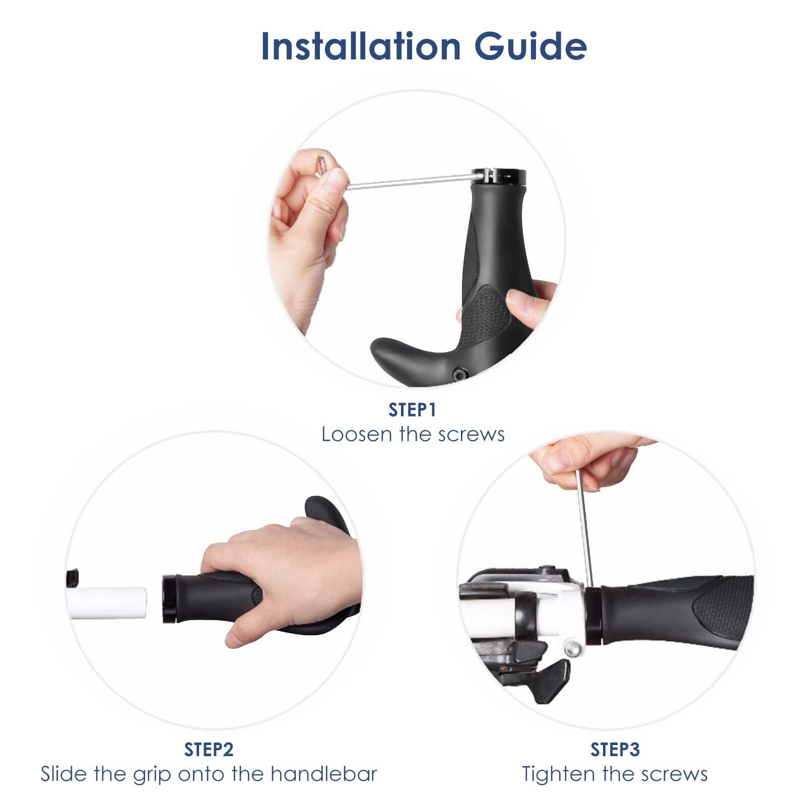 取り付け簡単:自転車のハンドルバーにハンドルを取り付け、ハンドルハンドルハンドルの両端をアルミニウム合金製のロックリングで固定したダブルロックの後、付属の六角レンチでハンドル端のボルトを締めてください。(ご注意:外径22.2 mmのハンドルに適しています。購入前に、自転車のハンドルの内径を必ずご確認してください。)