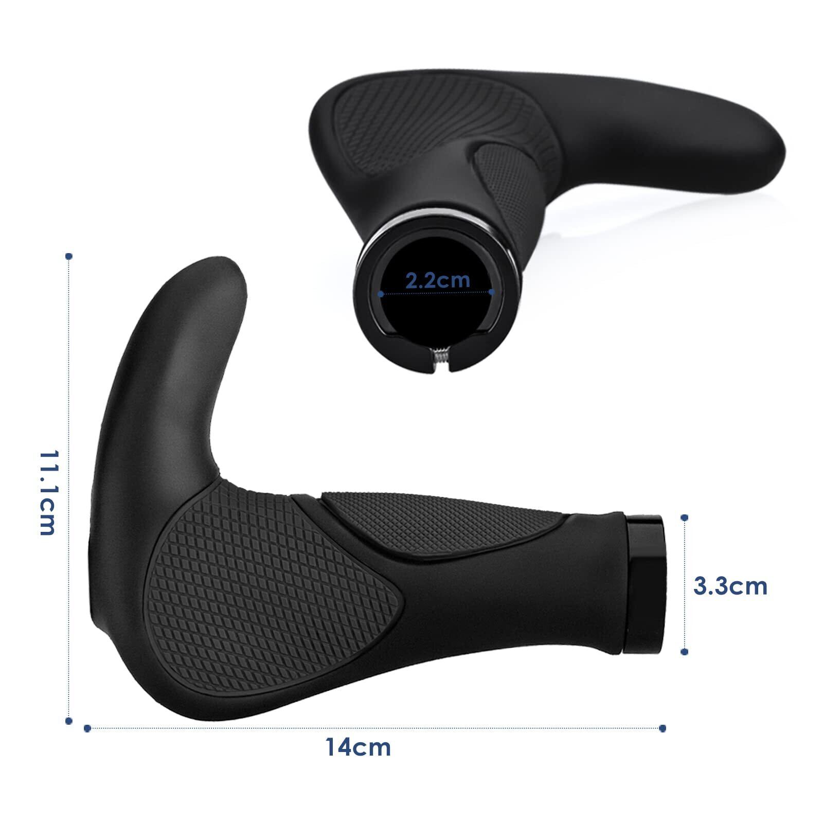 製品仕様:製品長:140 mm、ハンドルサイズ:14 x 11 x 4 cm、重量:250 g、バッグ内容:ハンドル×2、六角レンチ×2。(ご注意:外径22.2 mmのハンドルに適しています。購入前に、自転車のハンドルの内径を必ずご確認してください。)