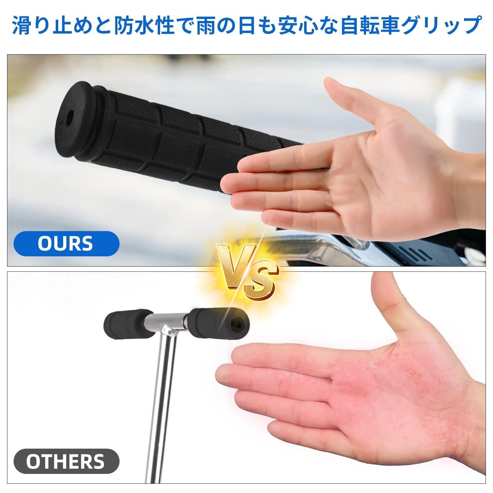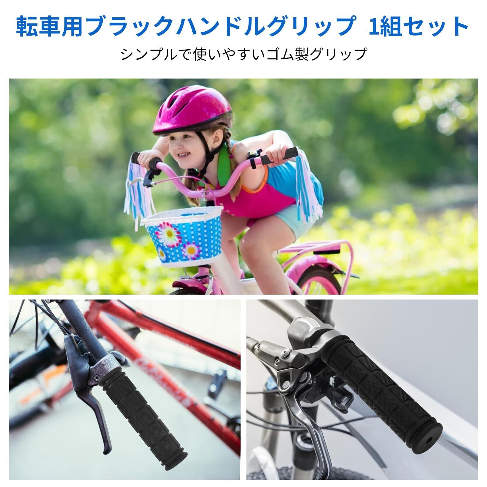 自転車 ハンドルグリップ 滑り止め ゴム製 衝撃吸収 グリップ交換 補修 修理 予備 ママチャリ キックボード マウンテンバイク/ロードバイク/折りたたみ自転車対応 内径22.2mm 1組(2個)セット ブラック カスタマ