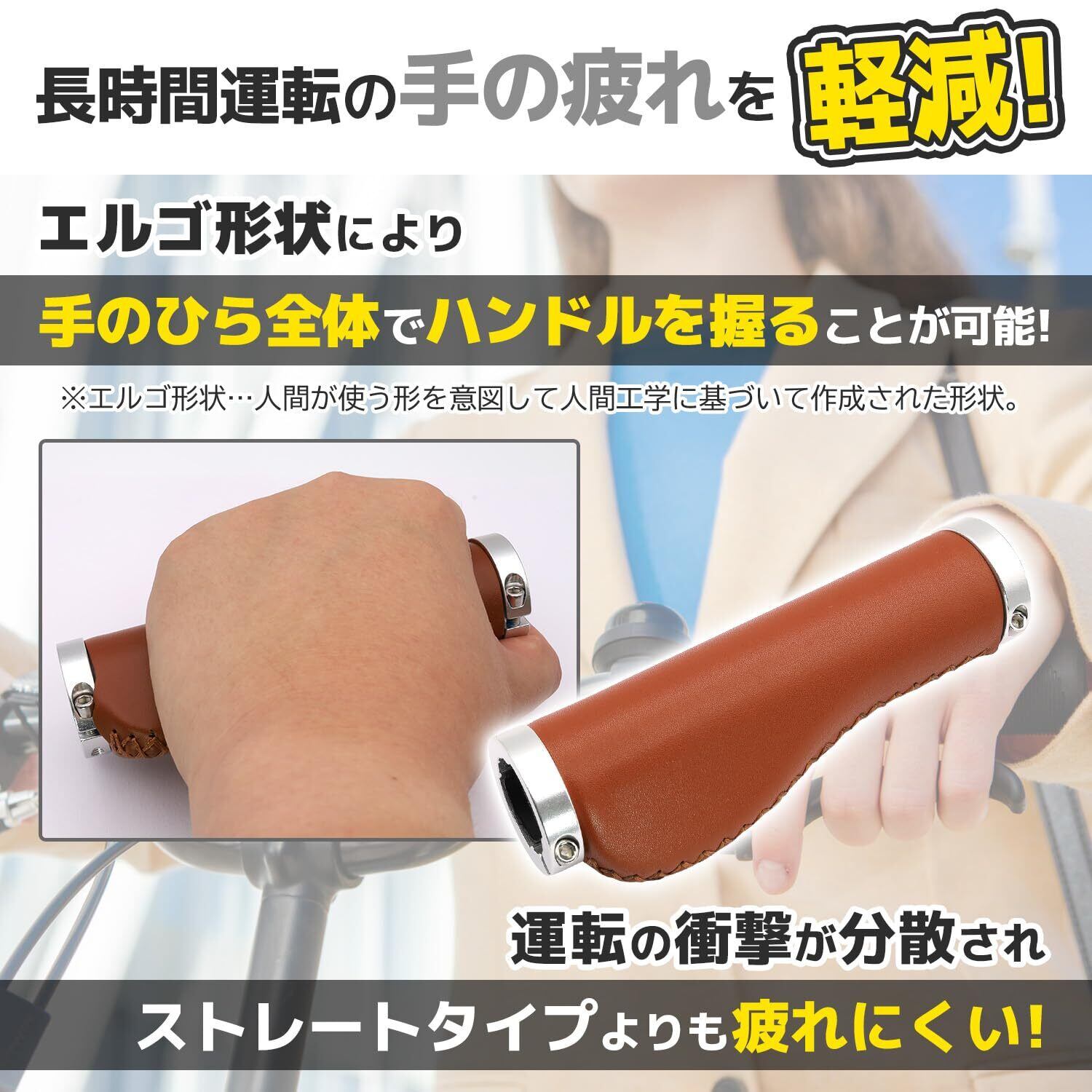 エルゴグリップ クロスバイク 自転車 22.2 mm ハンドル PU レザー エルゴ グリップ