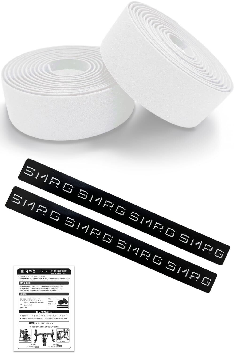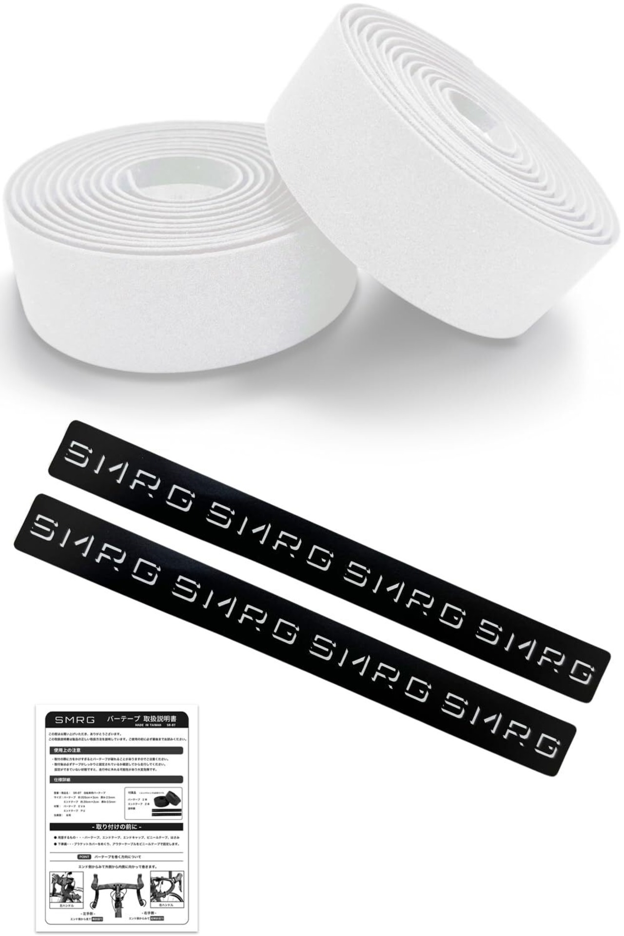 SMRG バーテープ ロードバイク ドロップハンドル EVA製 SR-BT エンドテープ付属 (ノーマル ホワイト, 両面テープあり)