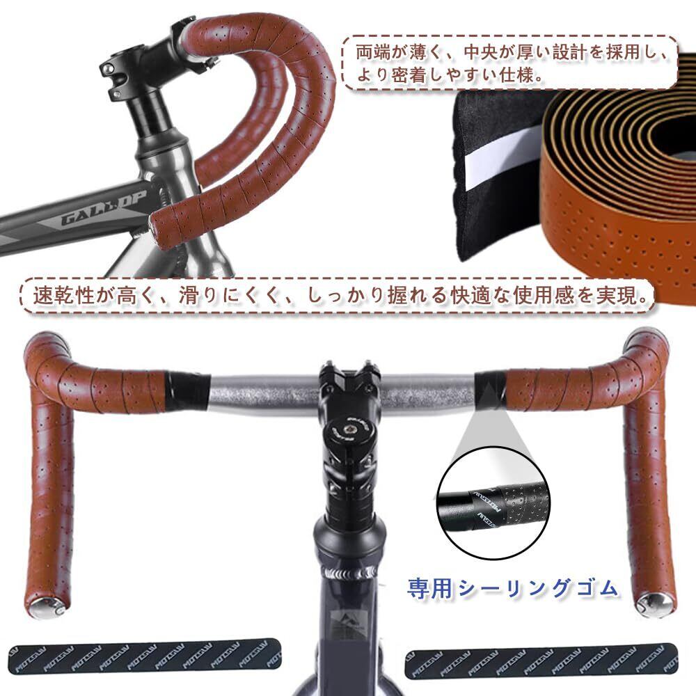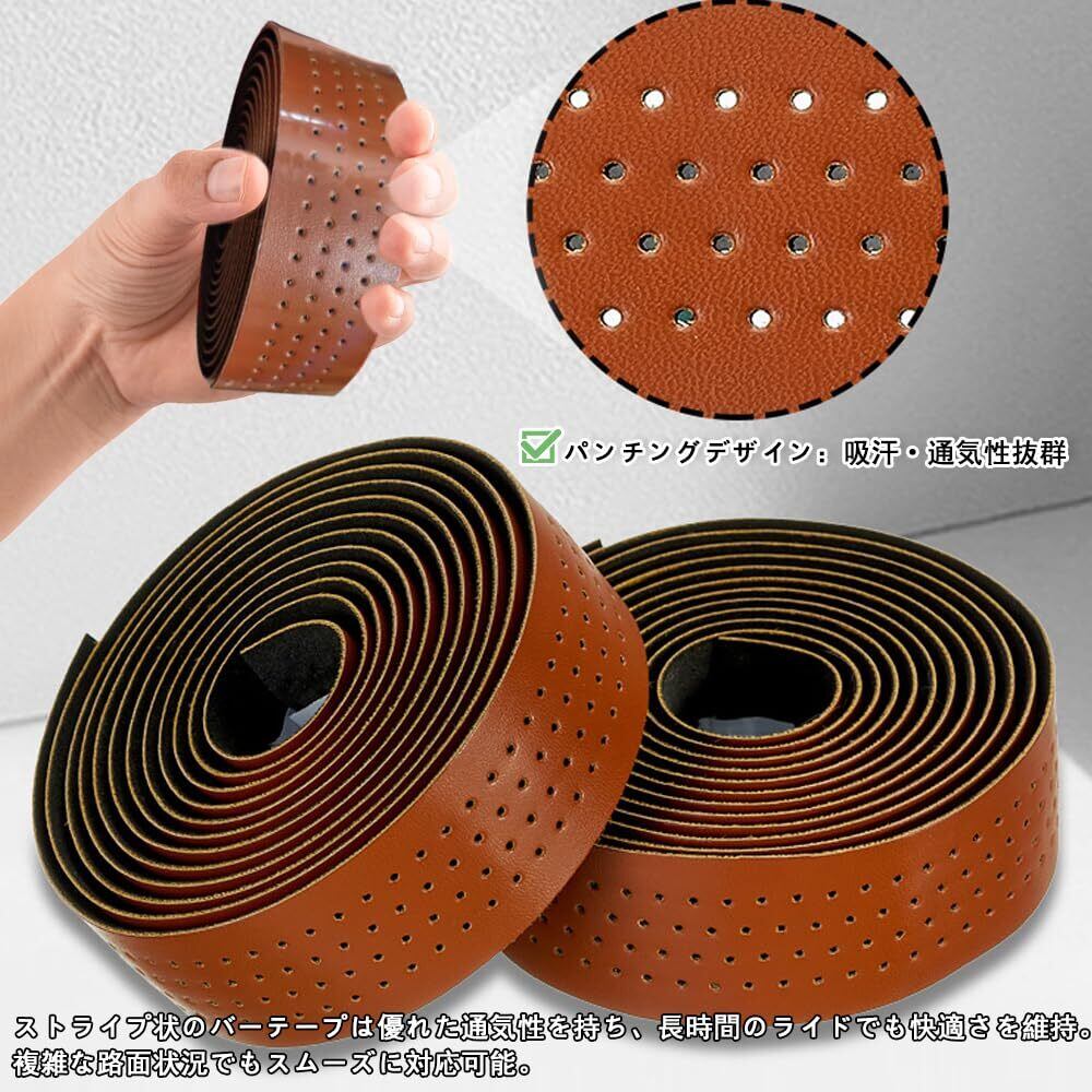 バーテープ ロードバイク用 ザー調 PU+EVA製 自転車用グリップ バーテープ 穴あき 滑り止め 左右セット ブラウン