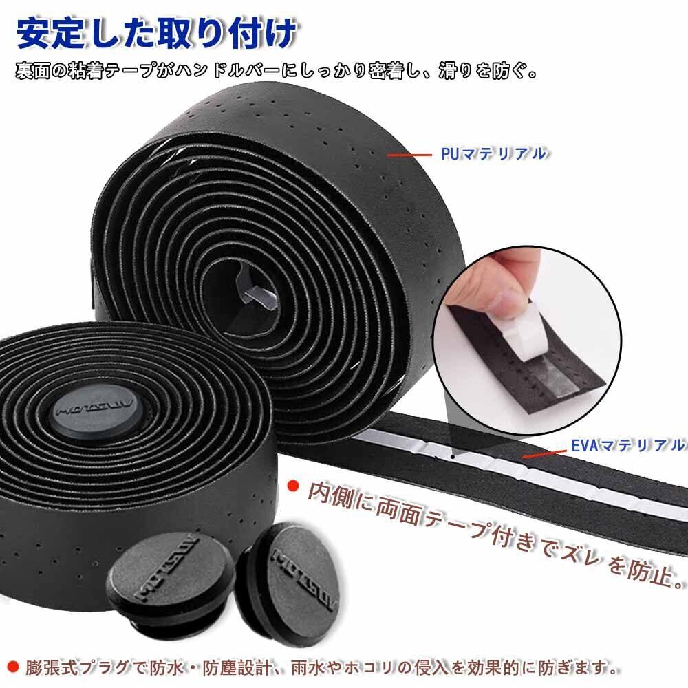 【製品仕様】 セット内容: バーテープ×2巻、専用エンドテープ×2本、バーエンドキャップ×2個 サイズ: 長さ2000mm × 幅30mm × 厚さ2.5mm 重量: 40g 素材: PU+EVA ※取扱説明書は付属しておりません。使用方法は商品ページの画像説明をご覧ください。