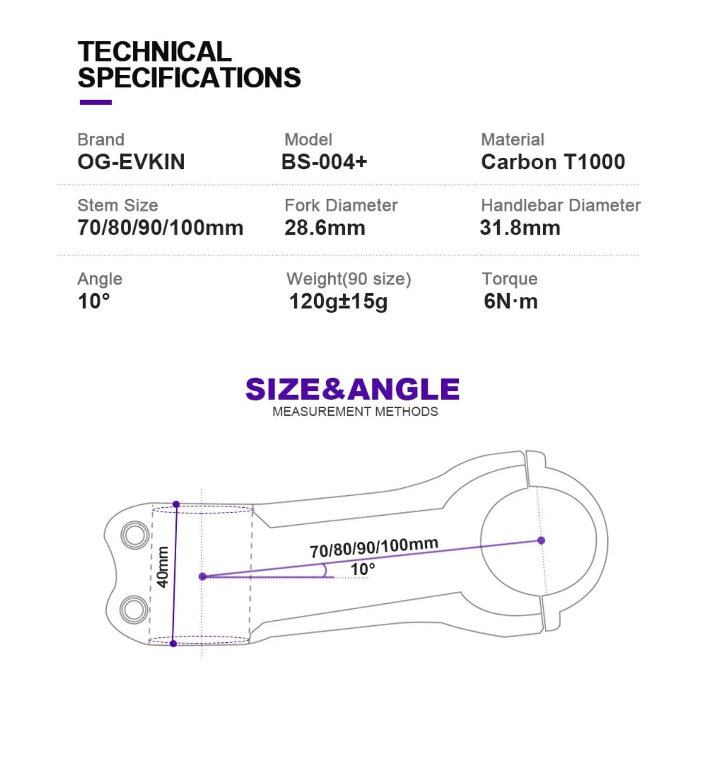 軽量 PRO カーボンステム チタンボルト付属 BS-004 OG-EVKIN t1000 10度 31.8mm チタンロードバイクパーツ ヒルクライムレース用カスタムに最適 (80mm)