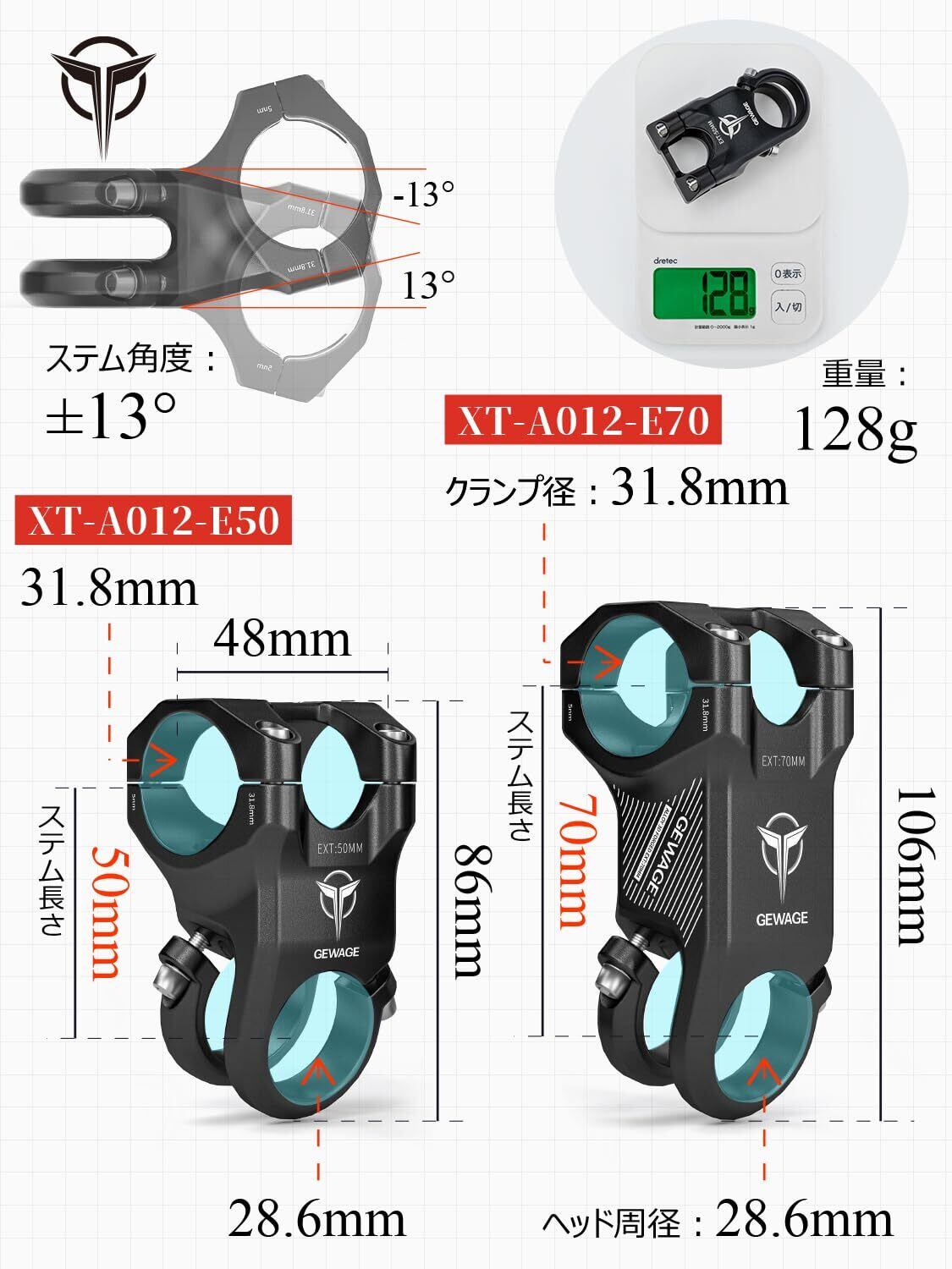 GEWAGE 自転車 ステム 31.8mm