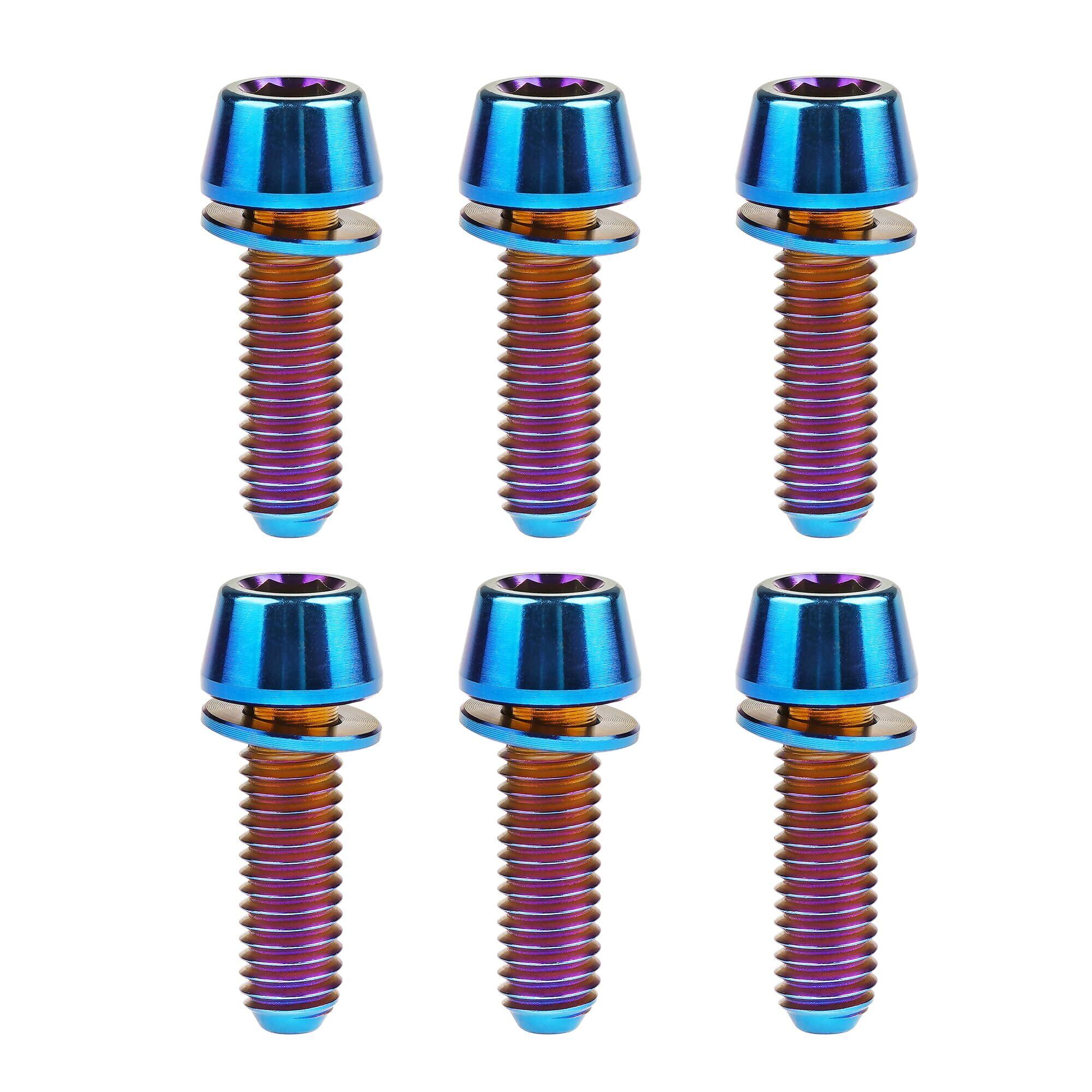 Dingtai 6個入 ワッシャーテーパーヘッドボルトM5x 16 18 20mmゴールチタンバイクステム (バーンブルー, M5x20mm)