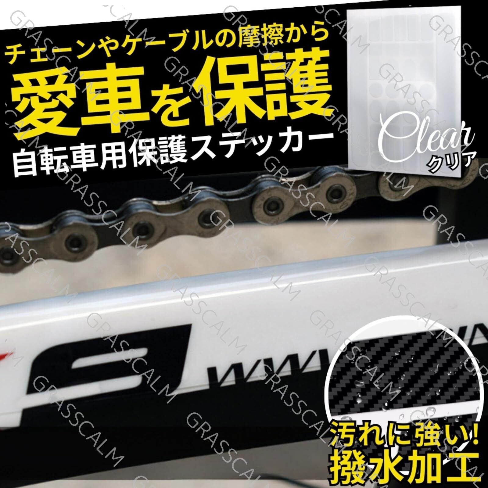 GRASSCALM2枚セット 自転車 保護フィルム シール フレーム プロテクト ステッカー こすれ防止 傷防止 マウンテンバイク ロードバイク プロテクター (透明クリア)