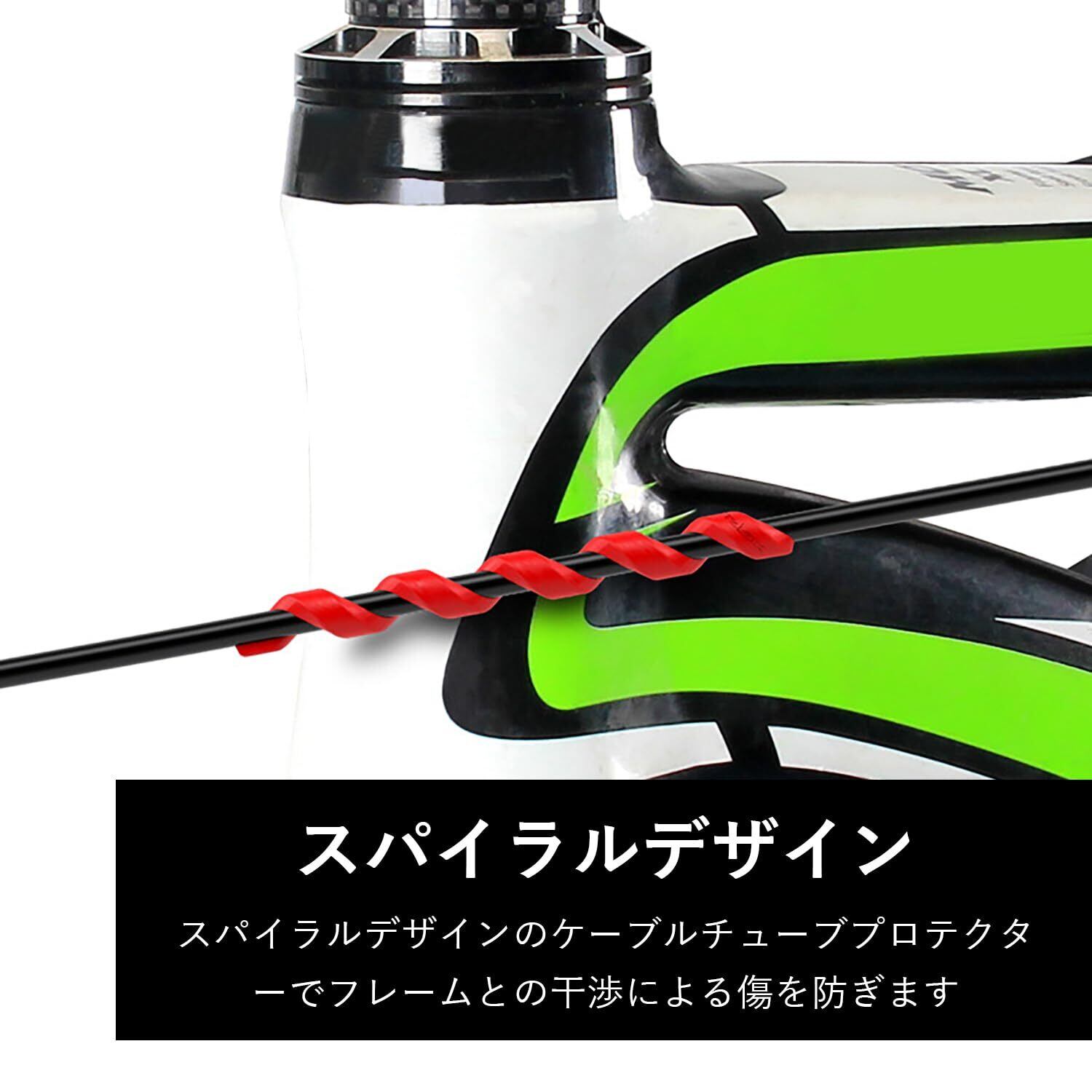 【保護スリーブ機能】ラインチューブとフレームが接する部分に取り付け、ケーブルを保護し、摩擦を減らして自転車のブレーキケーブルを整理する。スパイラルデザインのコードプロテクターがケーブルを固定。