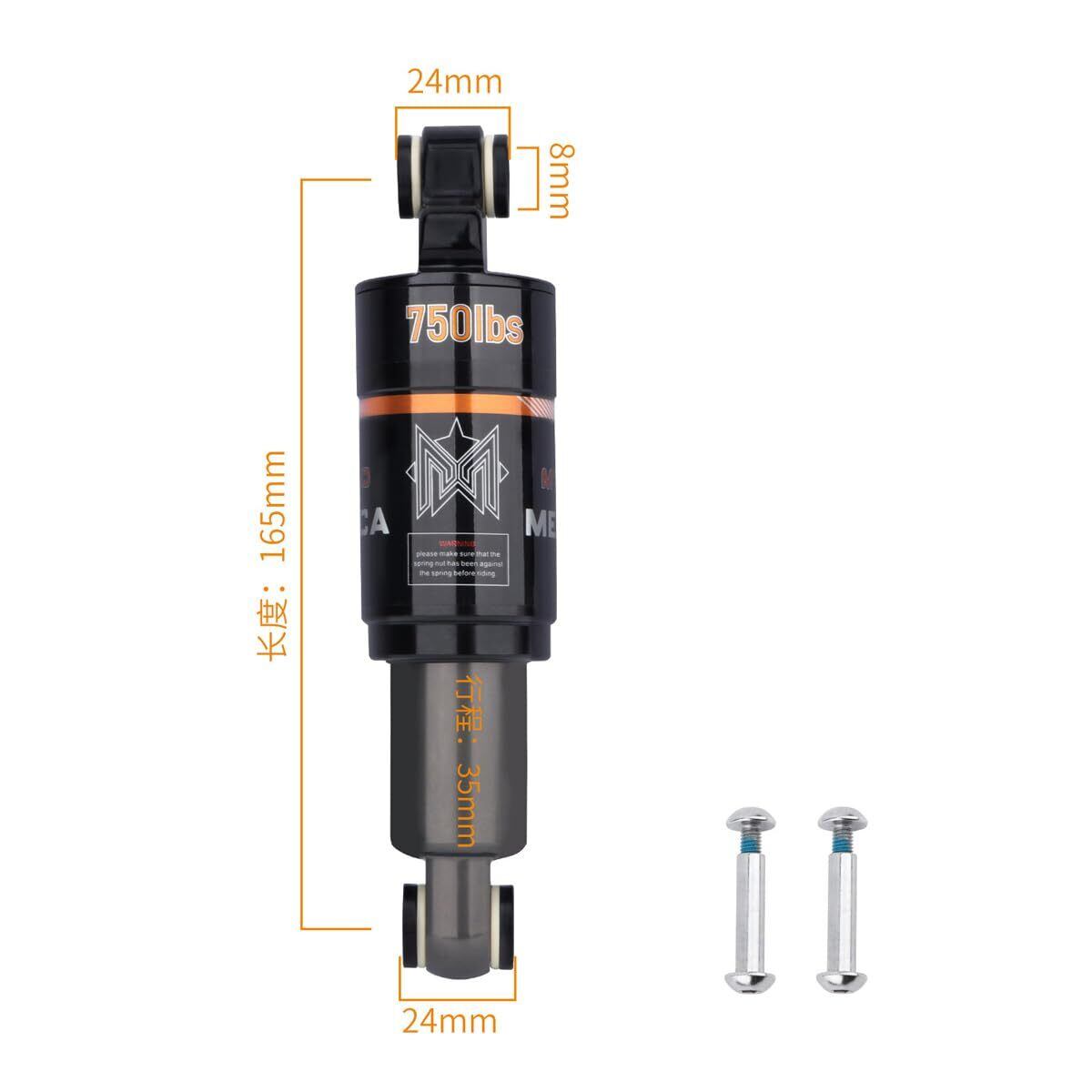 自転車用オイルスプリングショック 165mm 750ポンド - マウンテンバイク/電動スクーター用リアサスペンションストラット - DUブッシング&シール付き