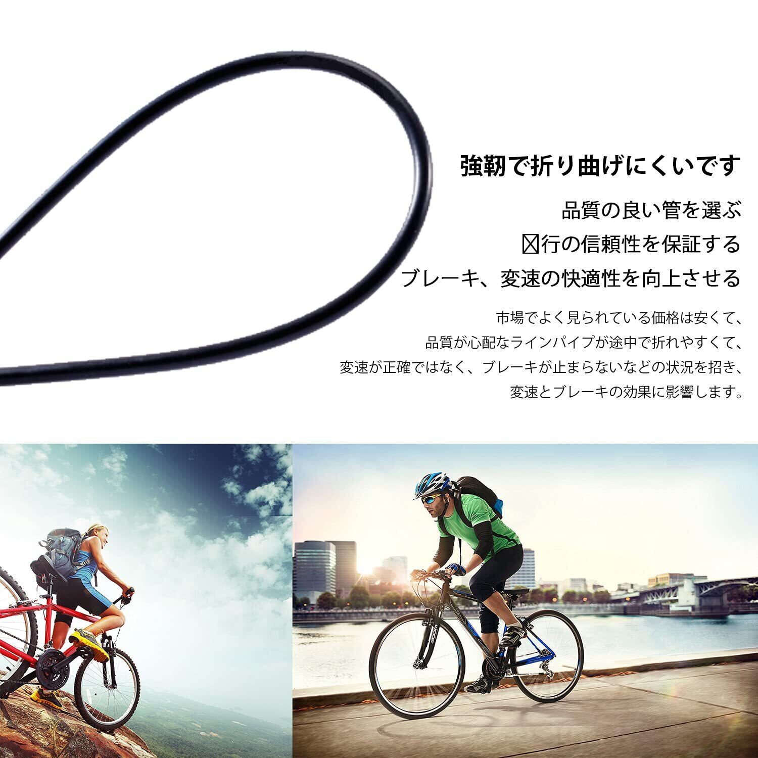【上質材料】:ブレーキケースは堅固なPVCコーティングを採用し、ステンレスケーブルを使用して、ブレーキケースの平らさを高めて、ブレーキケースを滑らかにして磨耗に耐えることができます。高張力に耐えて、割れないようにして、自転車の瞬間停止を助けます。ケースはPVC材料を採用して、耐寒、耐熱、耐食性酸化、変形しにくく、ブレーキの鋭敏性を保証します。