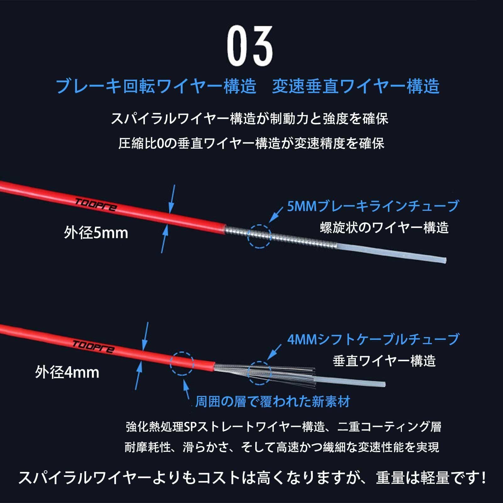 【素敵なライディングアクセサリー】:自転車シフトケーブルハウジングとインナーケーブルは、耐熱性、耐錆性、耐久性に優れたPVCとステンレススチール素材で作られており、サイクリング中のスムーズな操作性を提供します。シフトケーブルハウジングキットは耐摩耗性と耐久性に優れ、サイクリストの安全を確保します。