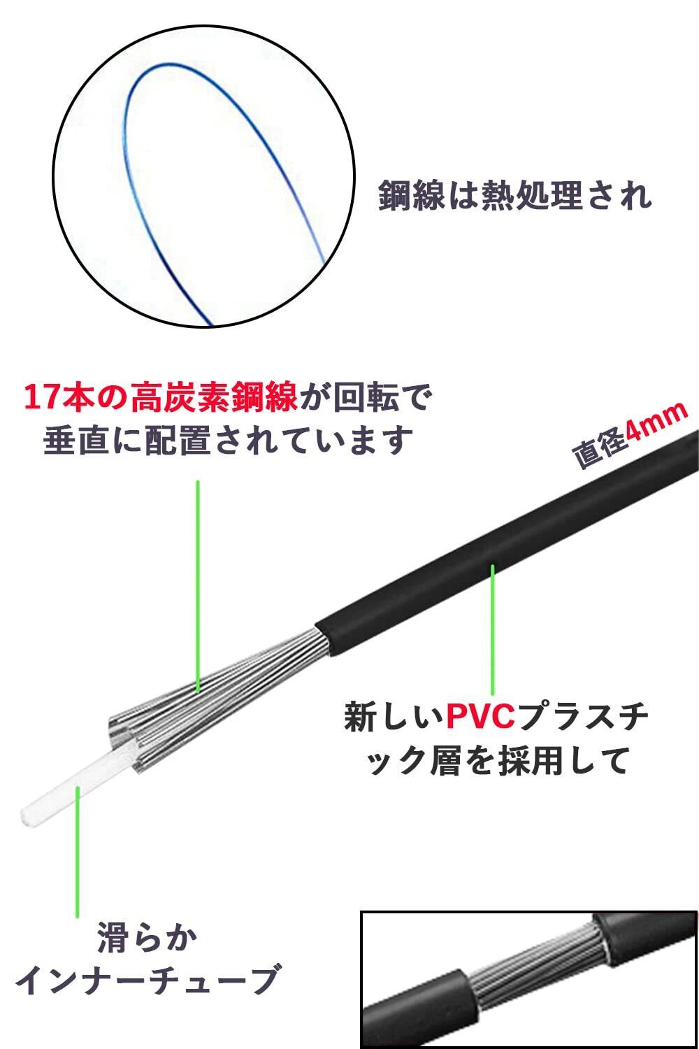 【高炭素鋼線】ケーブルの内は、17本の高炭素鋼線が回転で垂直に配置されています、変形することなく高張力に耐えることができ。鋼線は熱処理され、強度がより高く、靭性がより強い。