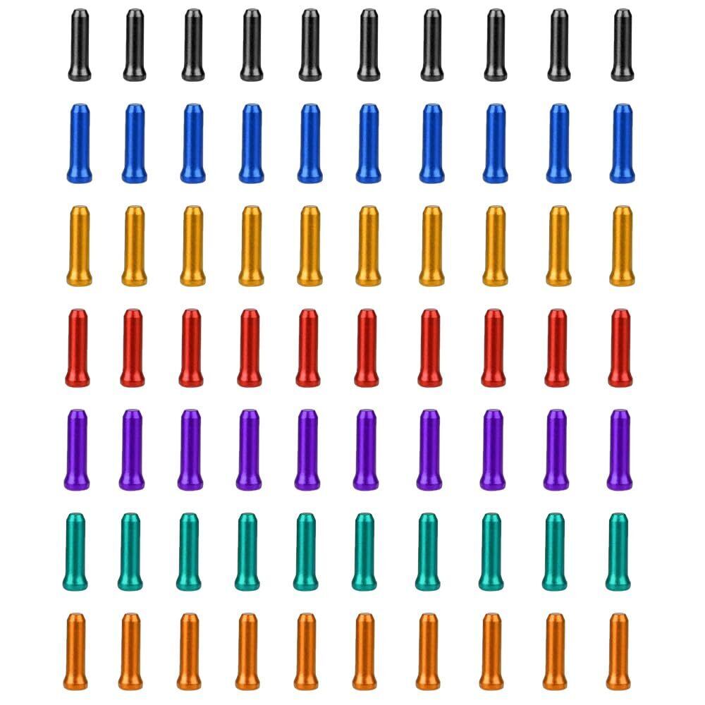 自転車ケーブルエンドキャップ 自転車ケーブルコアキャップ バイクケーブルエンドキャップ カラフル アルミニウム 合金 ケーブル エンド キャップ 防水 耐久性 摩耗防止 インストールが簡単 保護 自転車 パーツ(70個セット)