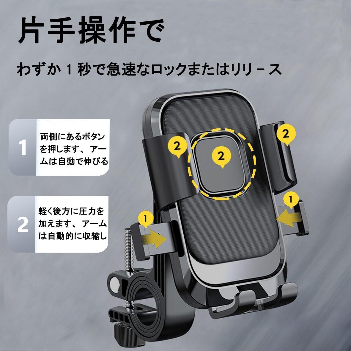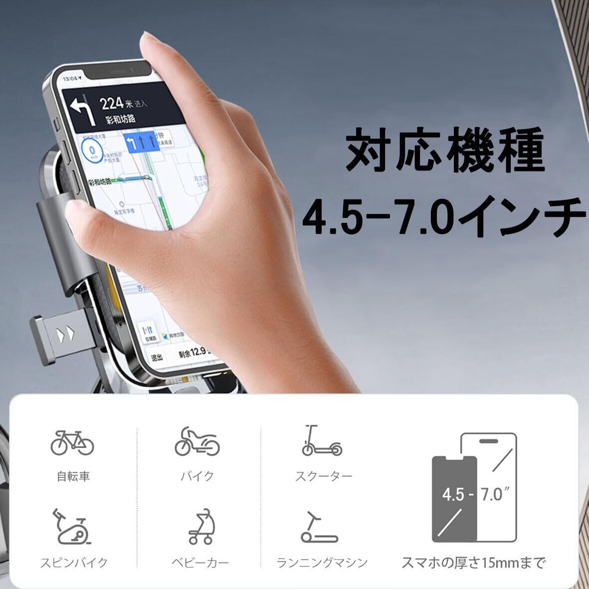 自転車 スマホホルダー 2025アップグレードモデル 片手操作 落下防止 振動吸収 強力な保護 スマホホルダー 自転車 360度回転 スタンド 簡単取付 4.5-7.0インチに対応 角度調整 脱着簡単 (半包み)