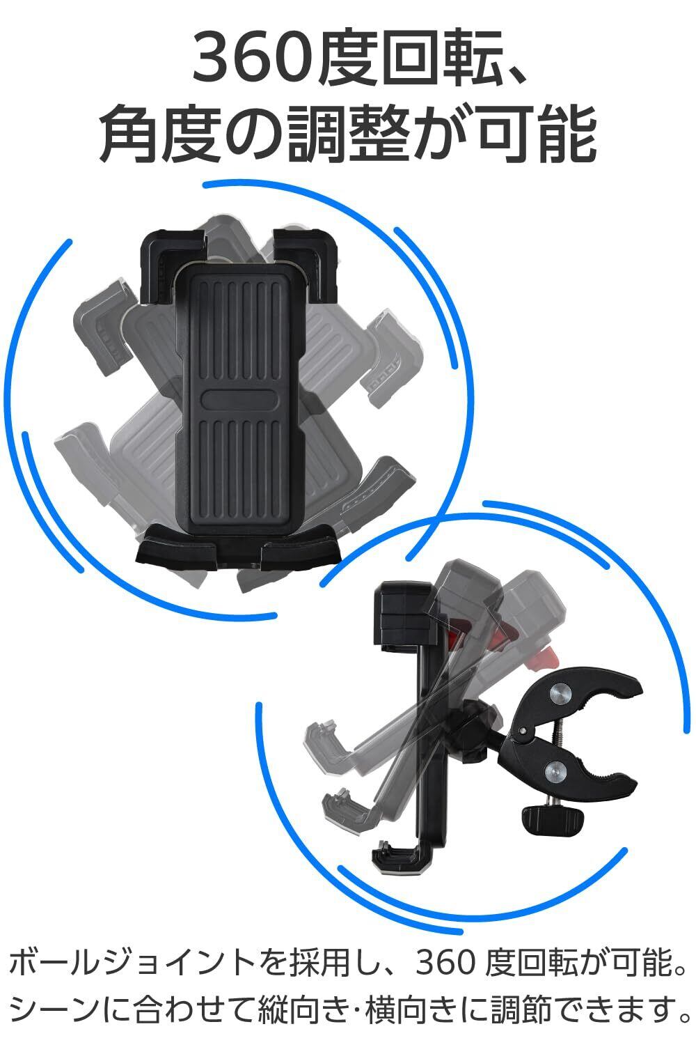 エレコム 自転車用 スマホホルダー クランプ式 ホルダーロック 360度回転 片手でスマホ着脱 パイプ径20~35mm対応 ブラック BCLWS25H01BK