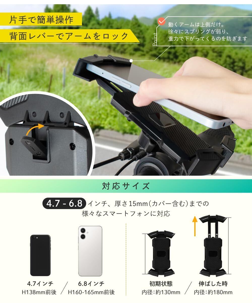 対応電話モデル 4.7-6.8インチ、厚さ15mm(カバー含む)までのiPhoneシリーズ、Android機種