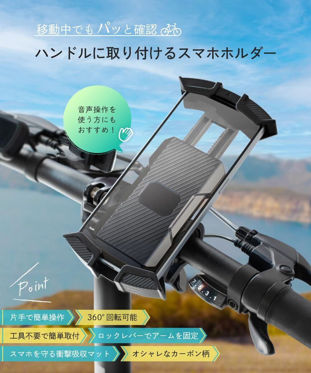 ONE SECOND スマホホルダー 携帯ホルダー 自転車 バイク ハンドル ロック機能 工具不要 簡単取付 4.7-6.8インチ 片手操作 360度回転 衝撃吸収 カーボン柄