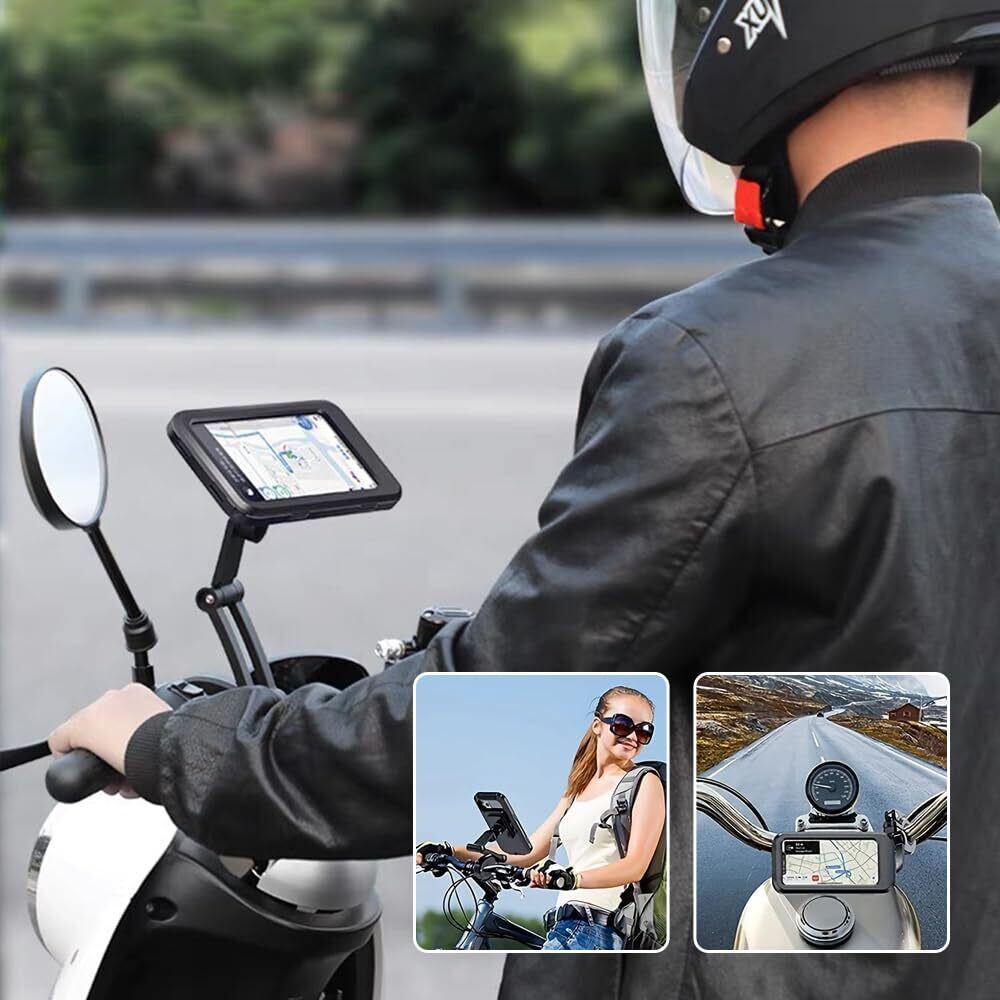 4.【360度回転・自由調整】このスマホホルダーは、360度回転可能で、画面を縦向きでも横向きでも簡単に調整できます。使用シーンに合わせて、ナビゲーションや通話など、快適な操作が可能です。ライディング中に最適な視角を提供します。