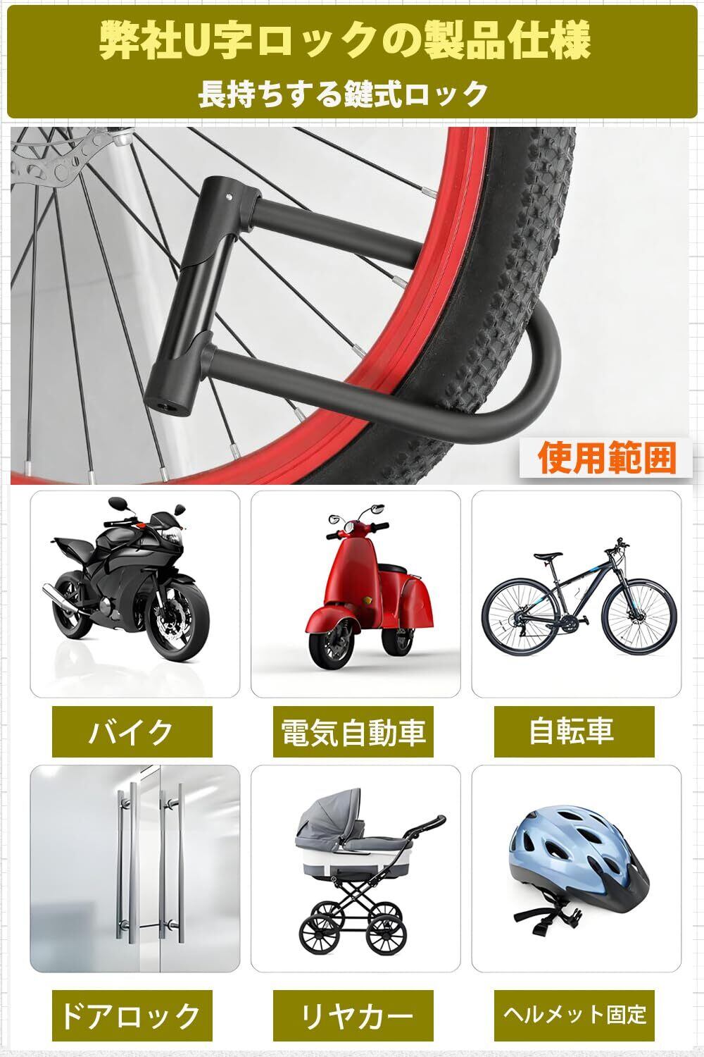 【高強度合金鋼U型ロック】頑丈な合金鋼材質配合シリコーンコーティング、耐衝撃・耐天候性に優れ、屋内外長期使用に対応。
