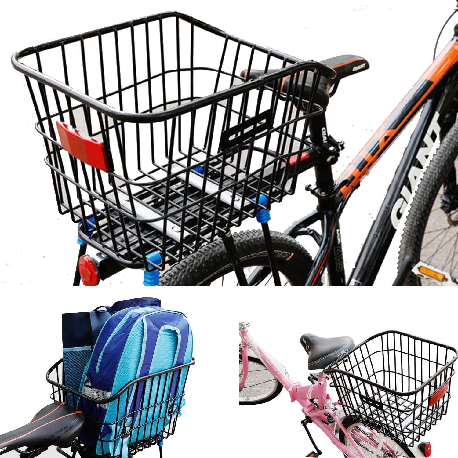 自転車用後ろバスケット 金属製 高強度 大容量 取付簡単 ブラック ラックマウント