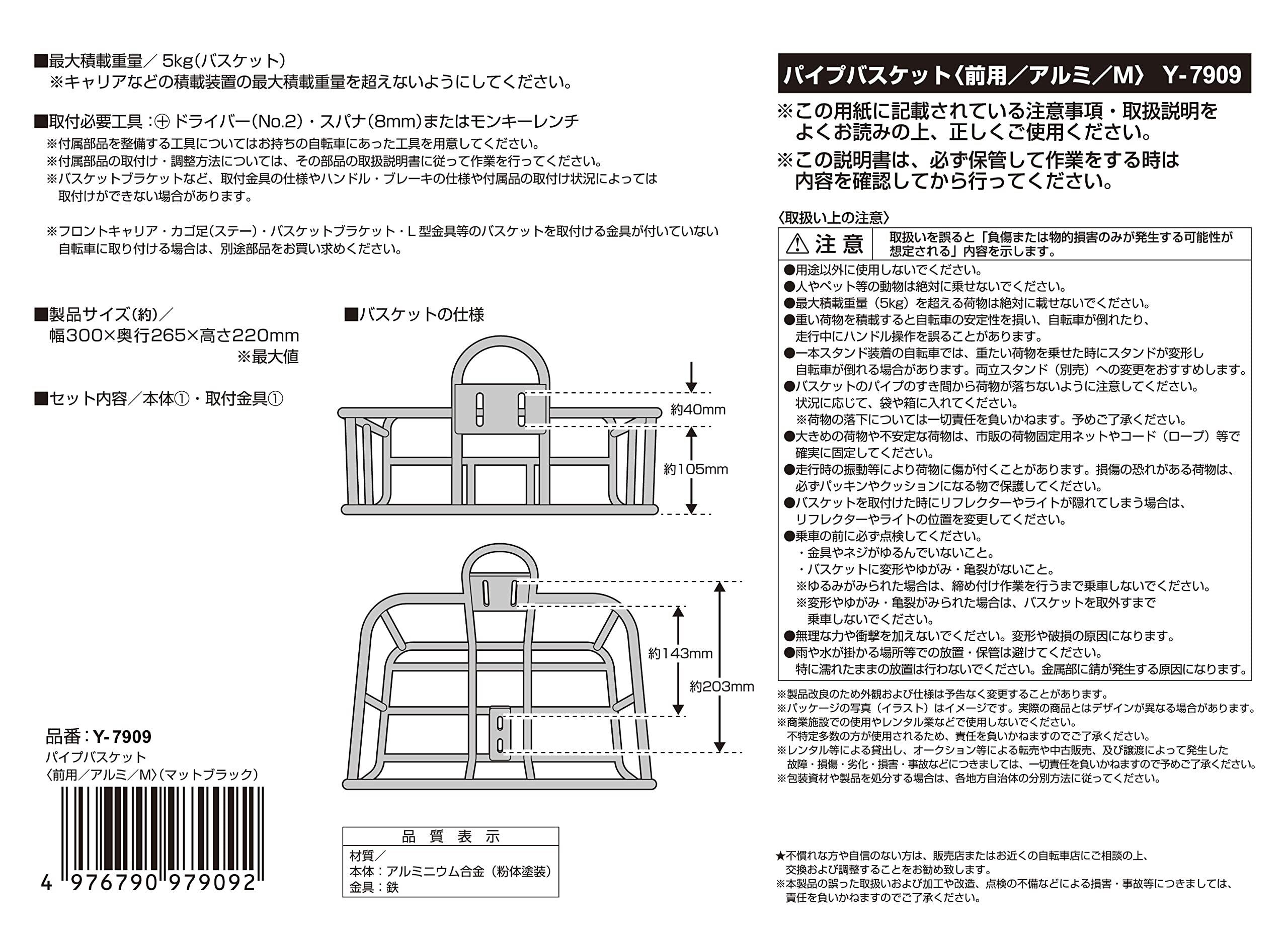 キャプテンスタッグ(CAPTAIN STAG) 前カゴ フロントバスケット パイプバスケット 前用 アルミ製 軽量 マットブラック Y-7306/Y-7909