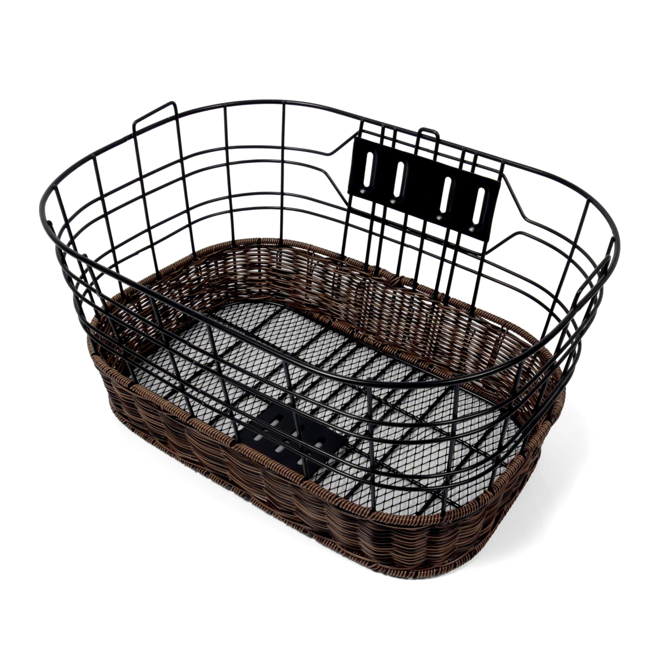 自転車バスケット 大容量 前バスケット 籐風 前カゴ フロントバスケット フロントカゴ 底メッシュ ワイド 防水 前カゴ用 自転車用 フロントバスケット用 固定 かご 頑丈 長持ち カジュアル 鉄製