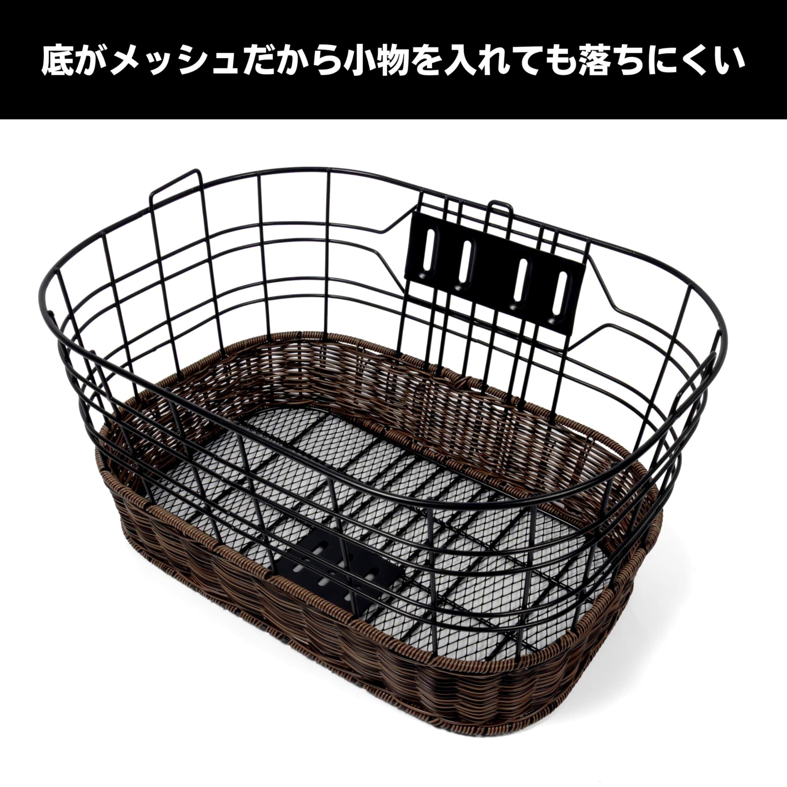 MARUHACHI(マルハチ)自転車 フロント バスケット 籐 風 前 カゴ 底 メッシュ 大型 ワイド おしゃれ 通勤 通学 簡単取付
