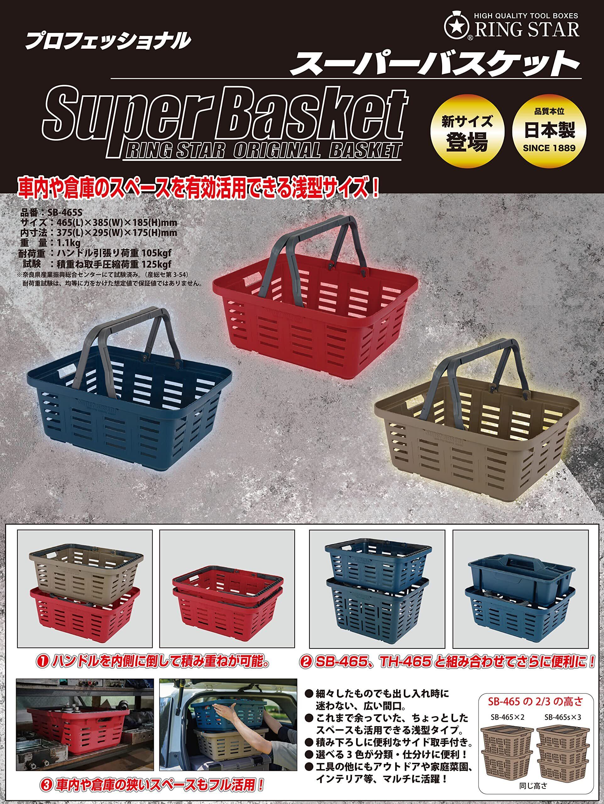 リングスター(Ring Star) スーパーバスケット 浅型 L465×W385×H185mm ブラウン SB-465S