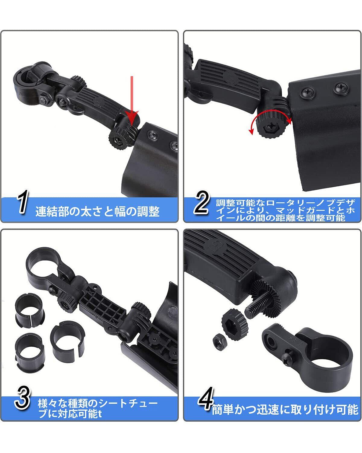【清潔に保つ】 泥や雨の中のドライブの必需品。マッドガードは、バイクに乗るときに汚れからあなたを守ります。フェンダーと自転車のタイヤの間の角度は調整可能です。ぬかるんだ道での風の抵抗を軽減するのに良いです。