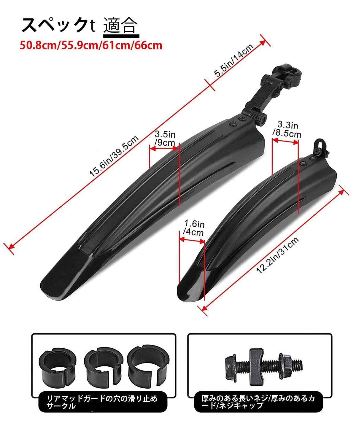 【サイズフィット】 当社の自転車用フェンダーは、20 ~ 26 インチの前輪と後輪に適しています。当社の自転車用フェンダーは、あらゆるタイプのマウンテン バイク、ロード バイク、ツーリング バイク、レーシング バイクなどに適しています。雨の日も快適なライディングとなりますよう、心よりお祈り申し上げます。