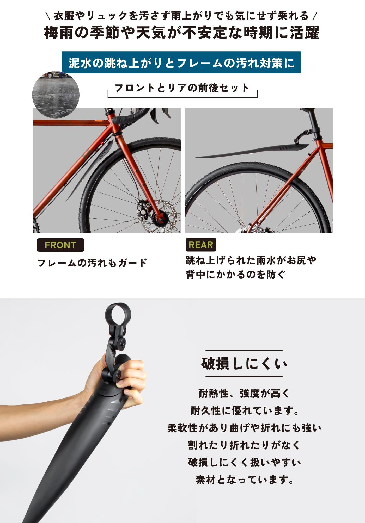 【商品内容】:フェンダー前後セット、日本語説明書【素材】: PP【サイズ】:(フロントフェンダー)長さ33.6cm, 幅2.3-5.6cm/伸縮範囲+2cm(リアフェンダー)長さ50cm、幅4-6cm【重量】:約197g
