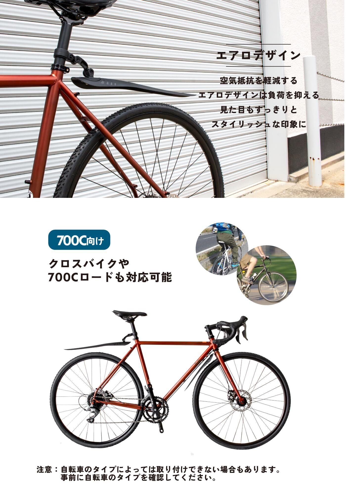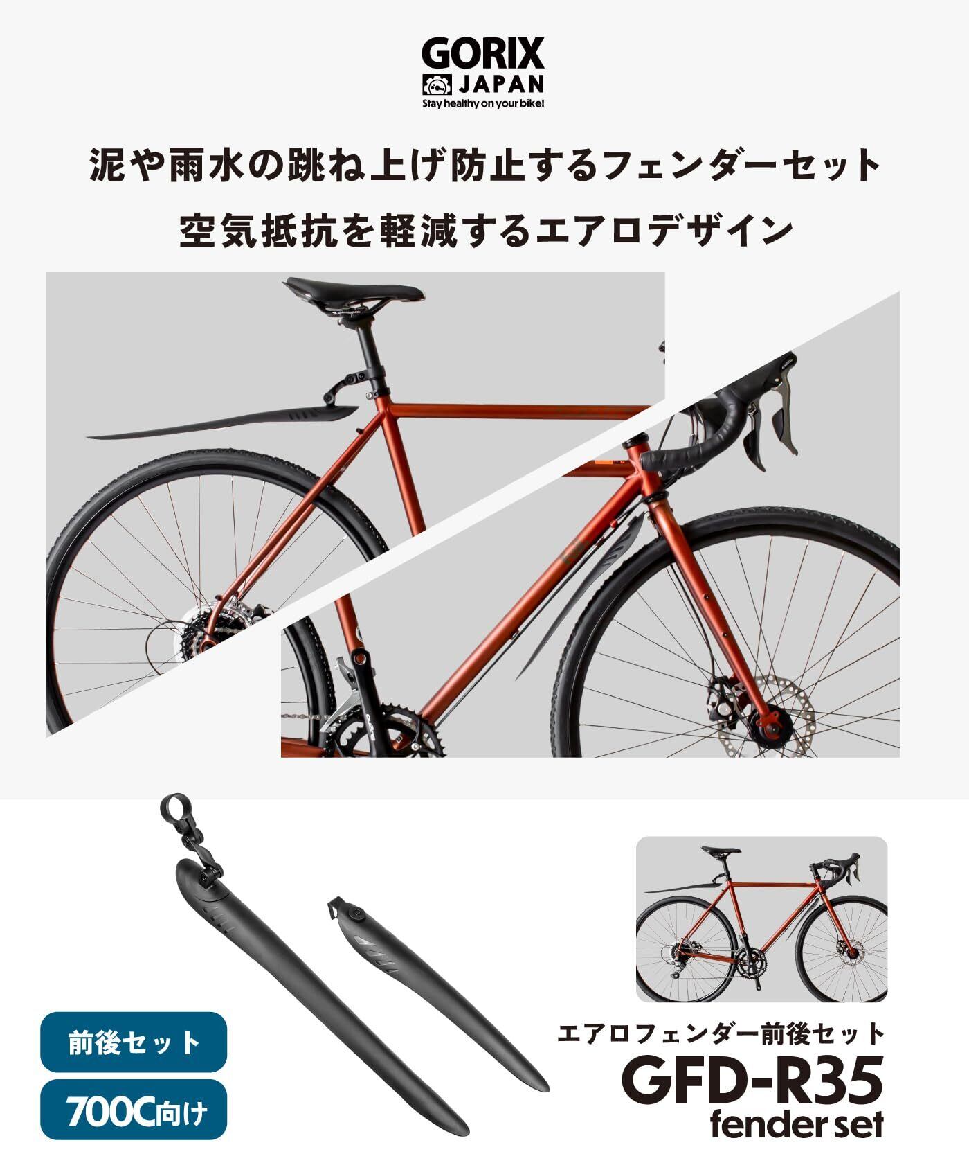GORIX(ゴリックス)自転車 泥除け ロードバイク クロスバイク エアロフェンダーセット 700c 前後セット フロントフェンダー リアフェンダー 軽量 どろよけ 取り付け 泥はね防止 前輪後輪(GFD-R35)