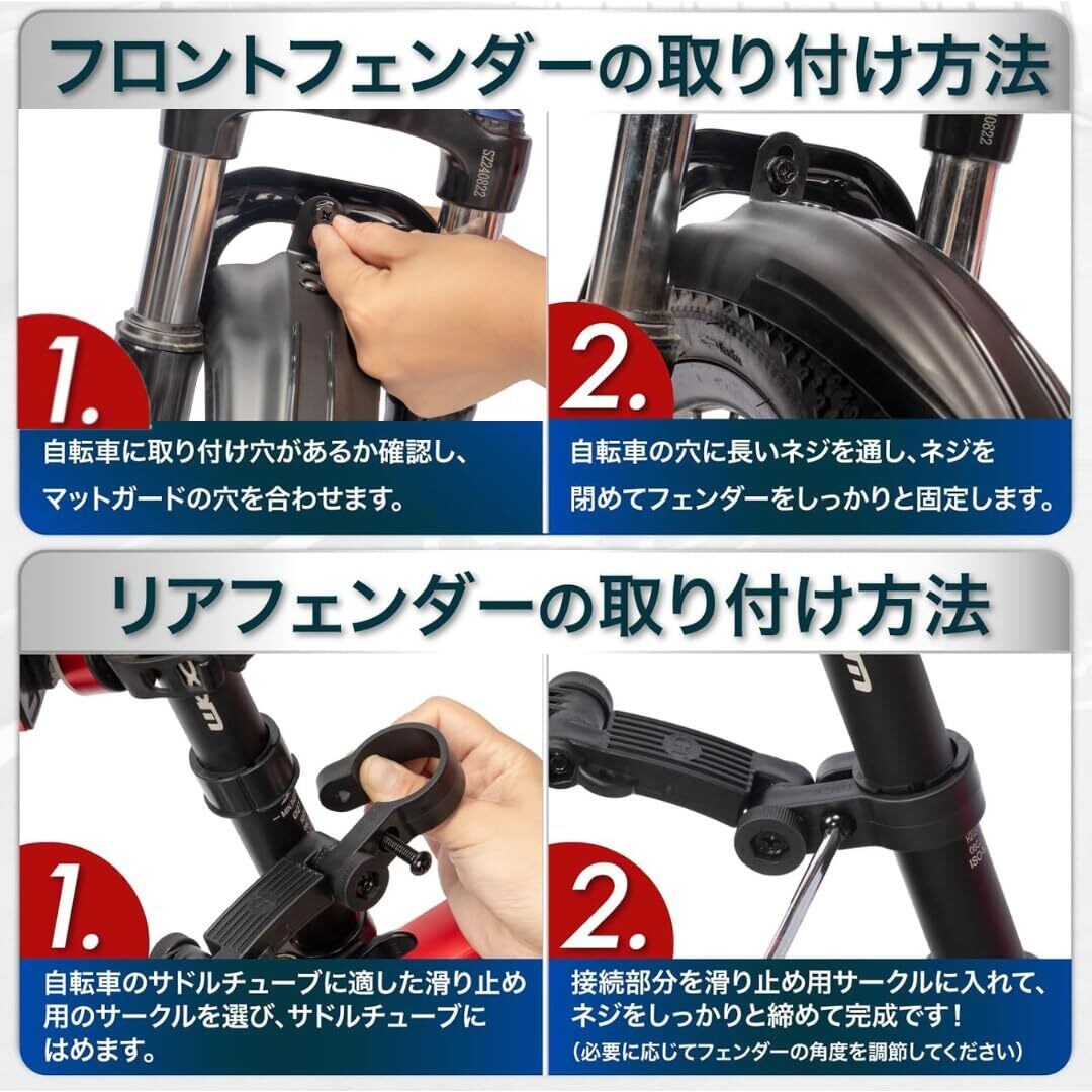 自転車 泥除け フェンダー 前後セット 角度調整可能 20 22 24 26インチ クロスバイク ロードバイク MTB マッドガード 通勤 通学 子供 雨対策 軽量 耐久 簡単取付