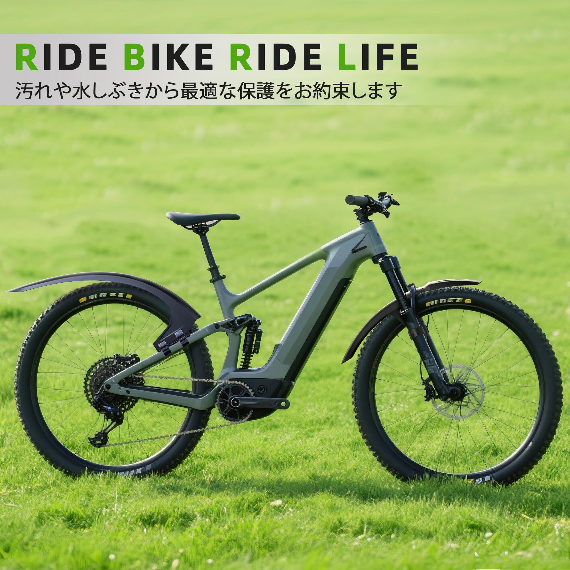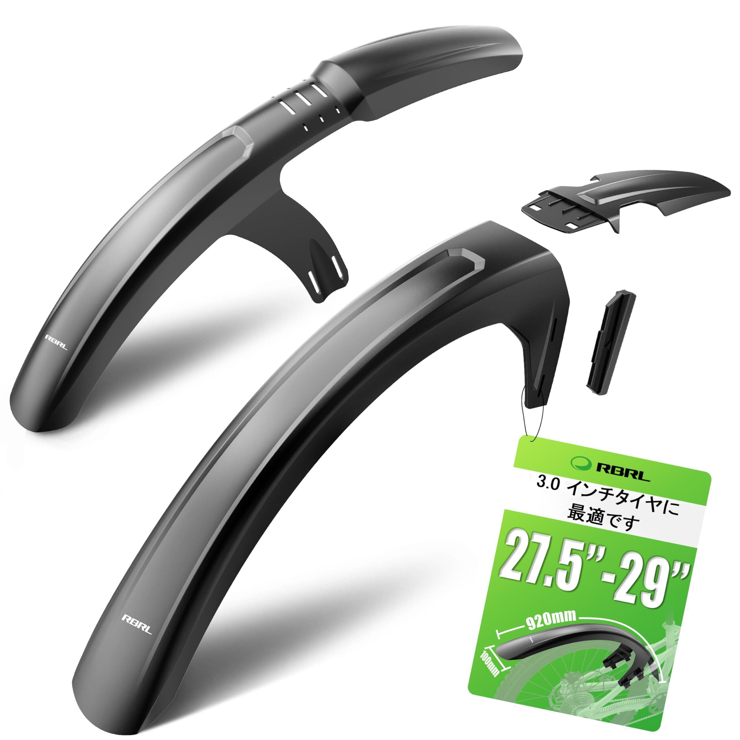 RBRL 自転車フェンダー 前後セット MTB・E-Bike対応 27.5~29インチ 最大3.0インチ幅タイヤ対応 フルカバーマッドガード 泥・水はね防止 工具不要 簡単取付