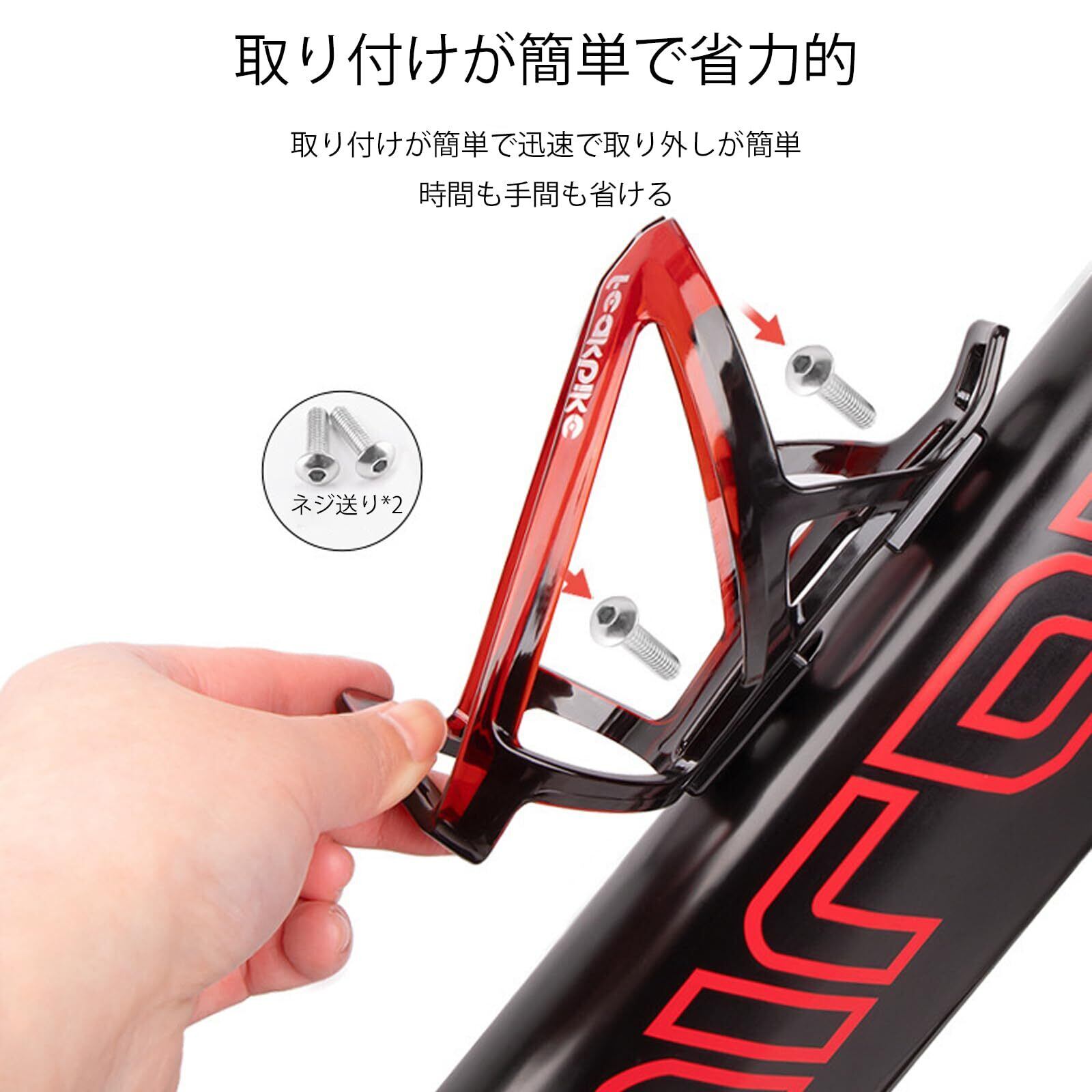 【取り付け簡単】ダウンチューブ、シートチューブ等、自転車フレームに設置された一般的なボトルケージの台座に、ボルトで簡単に取り付け可能です、自転車を傷つけることはありません。メモ:ネジが2本付属しています。