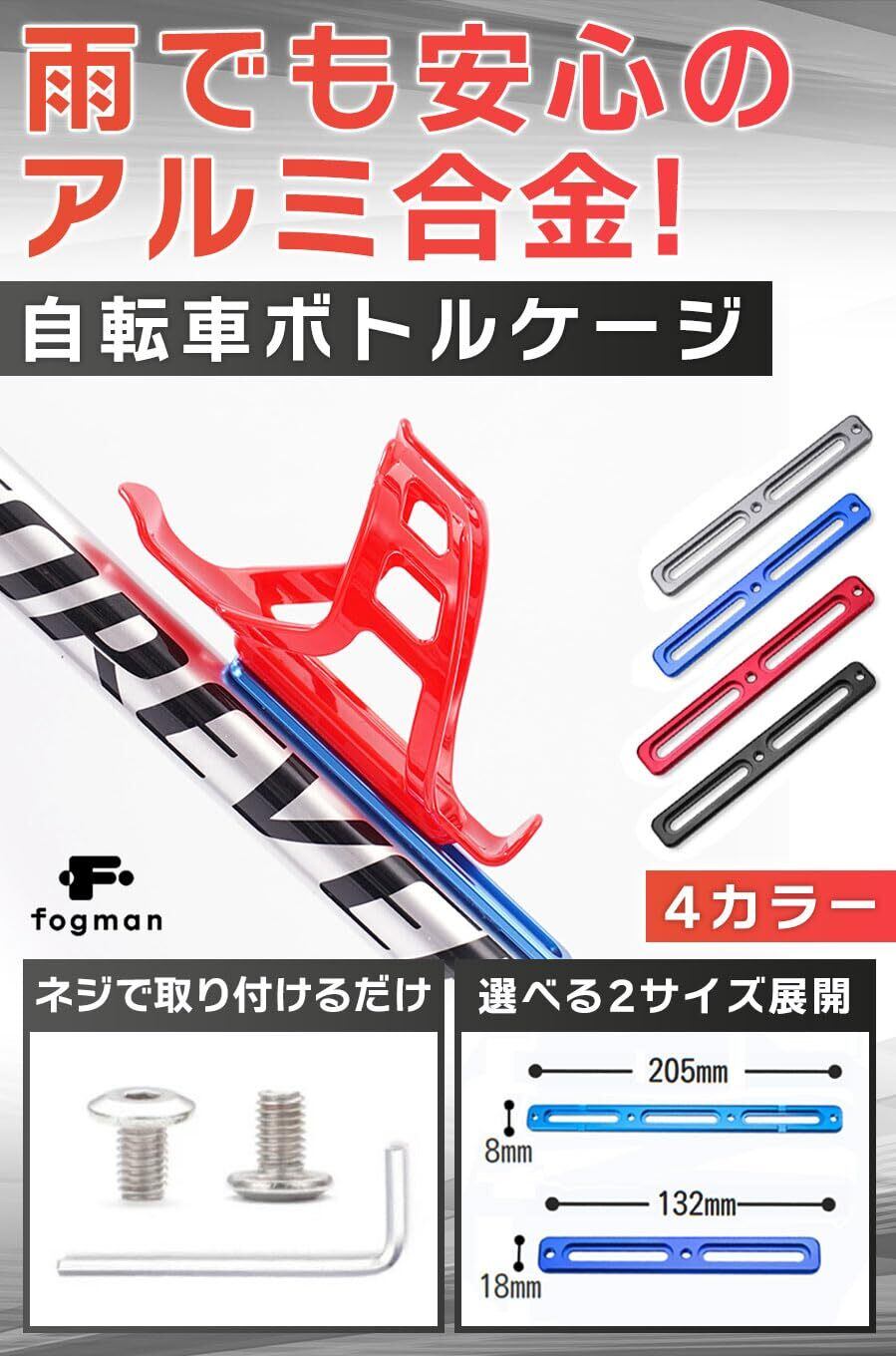 fogman ボトルケージ マウント アダプター ボトルホルダー ロードバイク 自転車 調整 (ブラック, 13.2cm)