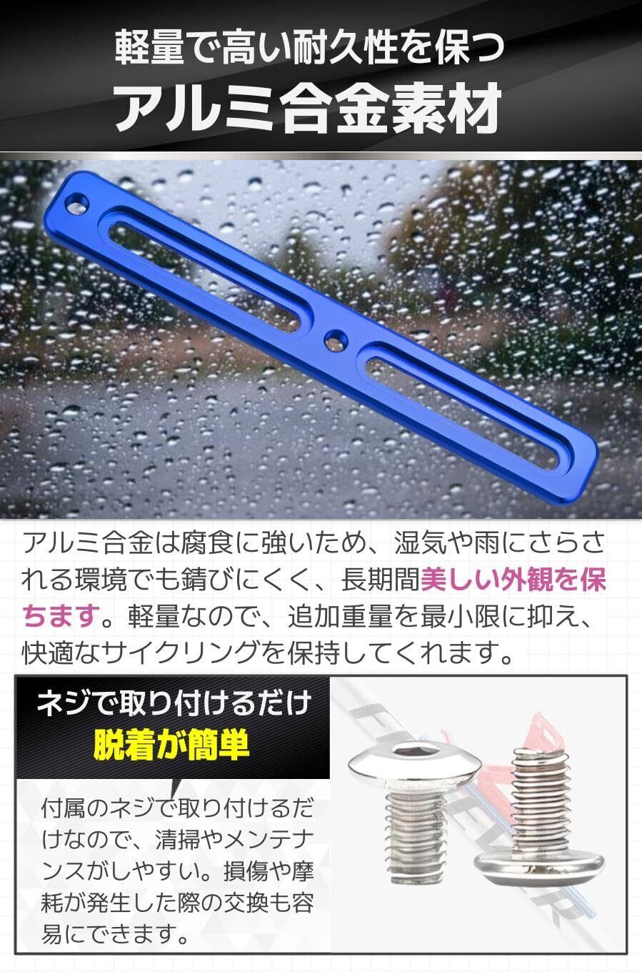 【商品特徴】①アルミ合金製:軽量で錆びずらいので長く使用できる/②2つのサイズ展開:自転車のタイプに合わせて長さを選べる/③取り付け簡単:付属のネジを六角レンチで回すだけ/④選べる4カラー:自転車に合わせて好みの色が選べる