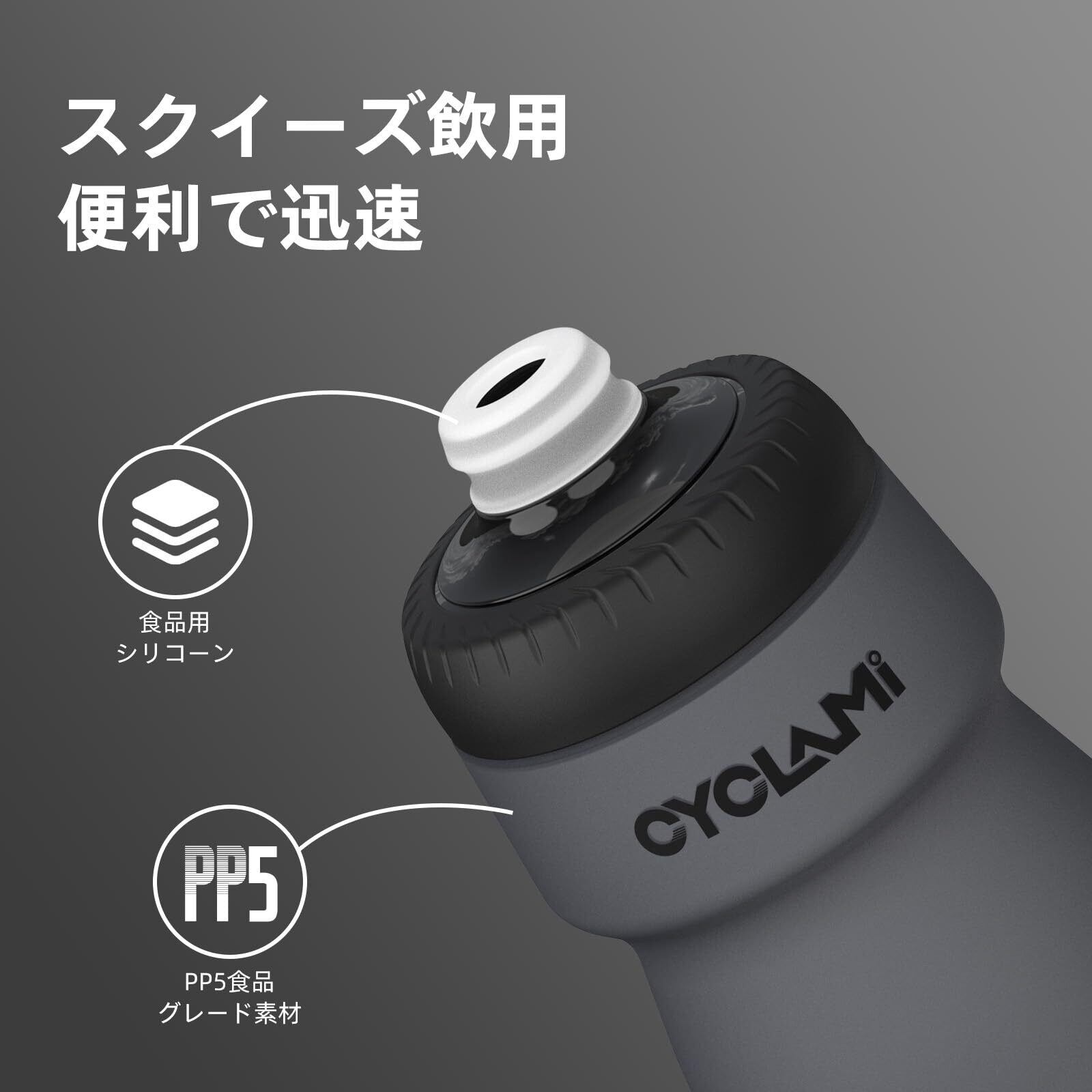 自転車用 ドリンクボトル スクイーズボトル サイクリング スポーツ アウトドア ロードバイク ドリンクボトル 漏れ防止 水筒 650ml 61.8g (グレー)